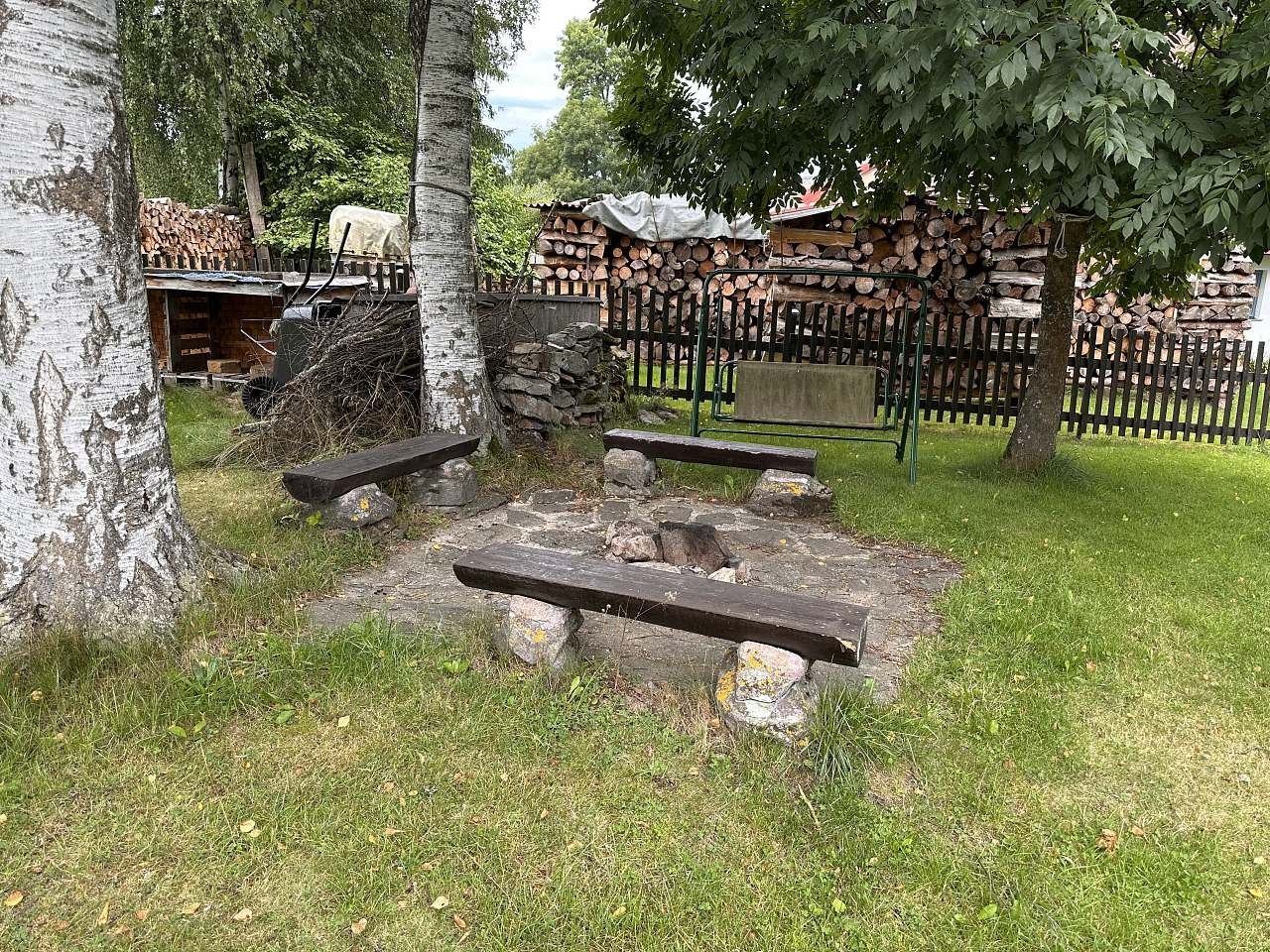 Malá část domu je podsklepena. V severní části domu je přistavena kůlna. Okolo se nachází oplocená a zatravněná zahrada s několika vzrostlými stromy rozléhající se na dvou pozemcích v centru obce o celkové výměře 1036 m2. Pozemky se nacházejí dle územního plánu v zastavěném území, v intravilánu cca 2 min. chůze od centra obce Křižánky. Na zahradu vede brána s vjezdem a lze na ní bez obtíží parkovat vícero vozidly.