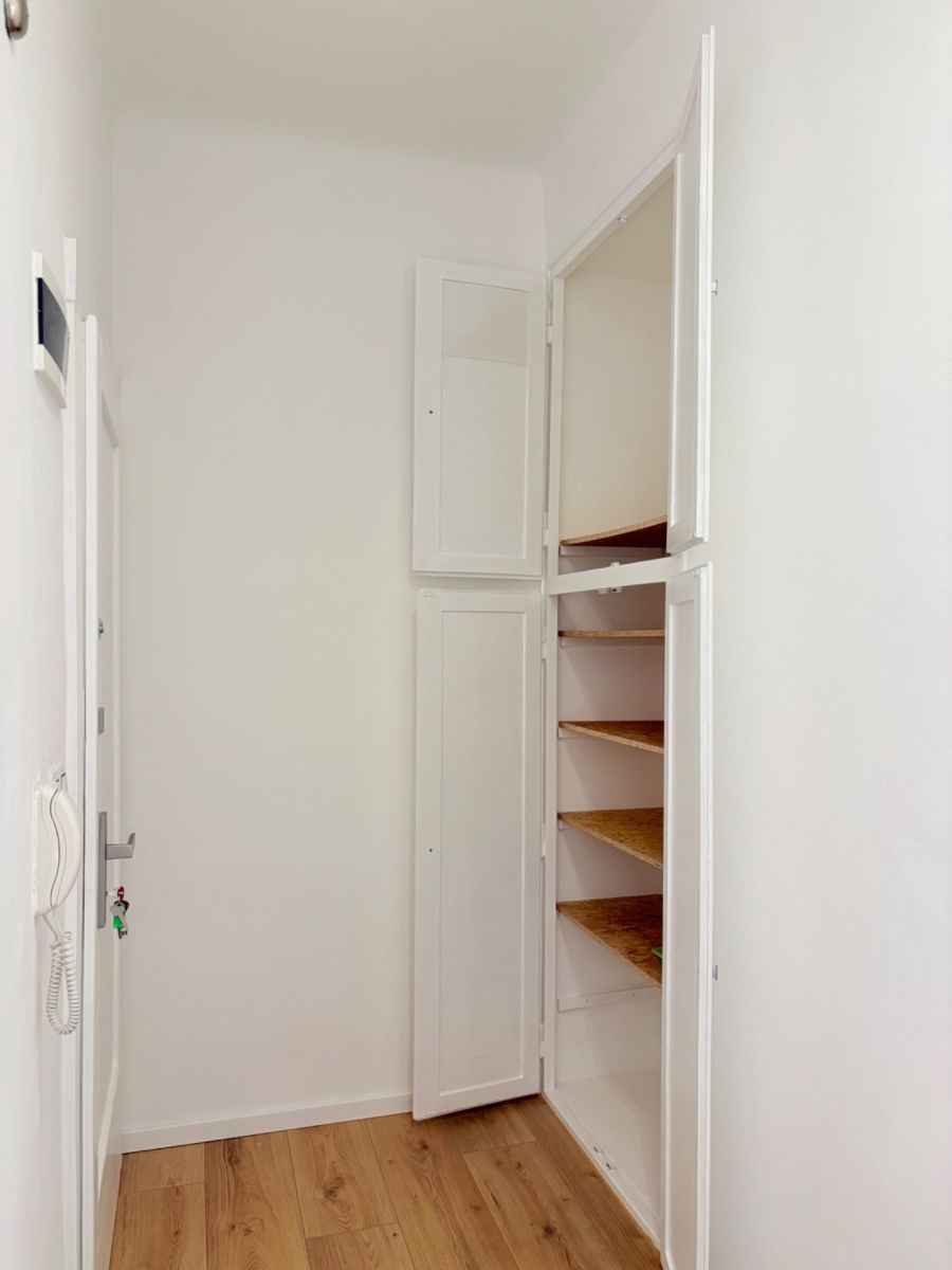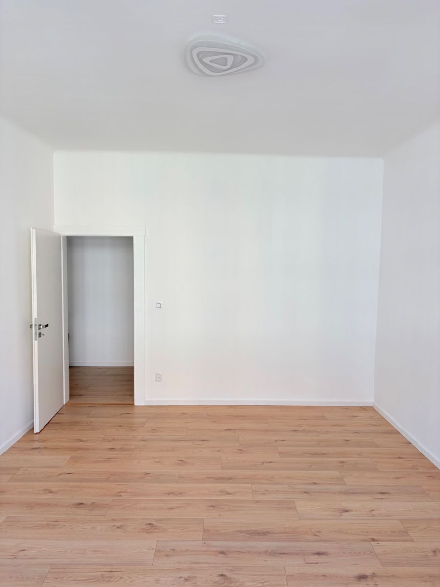 The interior has undergone a fresh modernization – it is newly painted and feels very airy thanks to the 3-meter high ceilings and abundance of natural light. There are new laminate floors in the main room and hallway, new floor skirting throughout, and freshly painted radiators, door frames, and entrance doors.