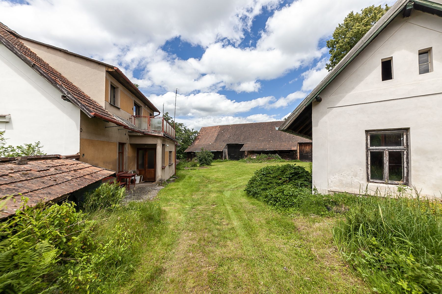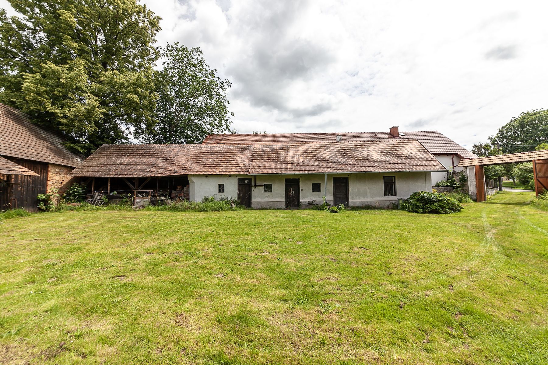 The main residential part is adjoined by an old agricultural building with an area of approximately 160 m2, which includes a garage and a pigsty. In the opposite building, you will find a smaller apartment created from a former annex with an area of approximately 31 m2, a pigsty of about 30 m2, a stable of approximately 52 m2, and a shed for machinery, which offers the possibility of conversion into an outdoor terrace for summer gatherings with barbecuing. The complex of buildings is completed by a barn of approximately 330 m2, which separates the built-up area from the vast garden at the rear of the property.