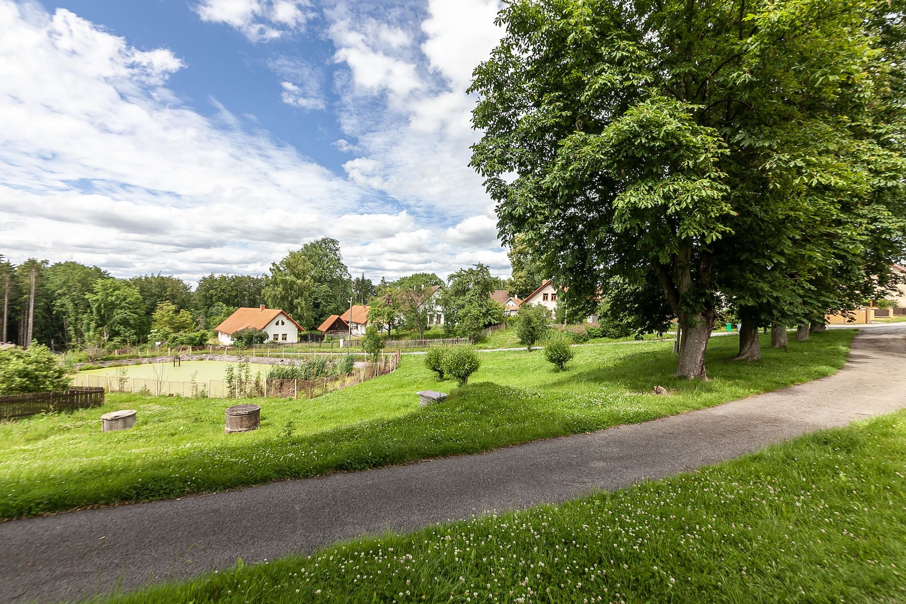 The village of Střítež is located in the southeastern tip of the Benešov district, on the left bank of the Želivka reservoir, at an altitude of 416 meters. The village is home to about a hundred residents and belongs to the neighboring Dolní Kralovice, where you can find the necessary civic amenities such as a health center with both general and dental practitioners, a pharmacy, a post office, a newly renovated sports complex, a renovated primary and kindergarten school, a cultural house, several shops, and restaurants. In 2016, the local cinema was digitized.
