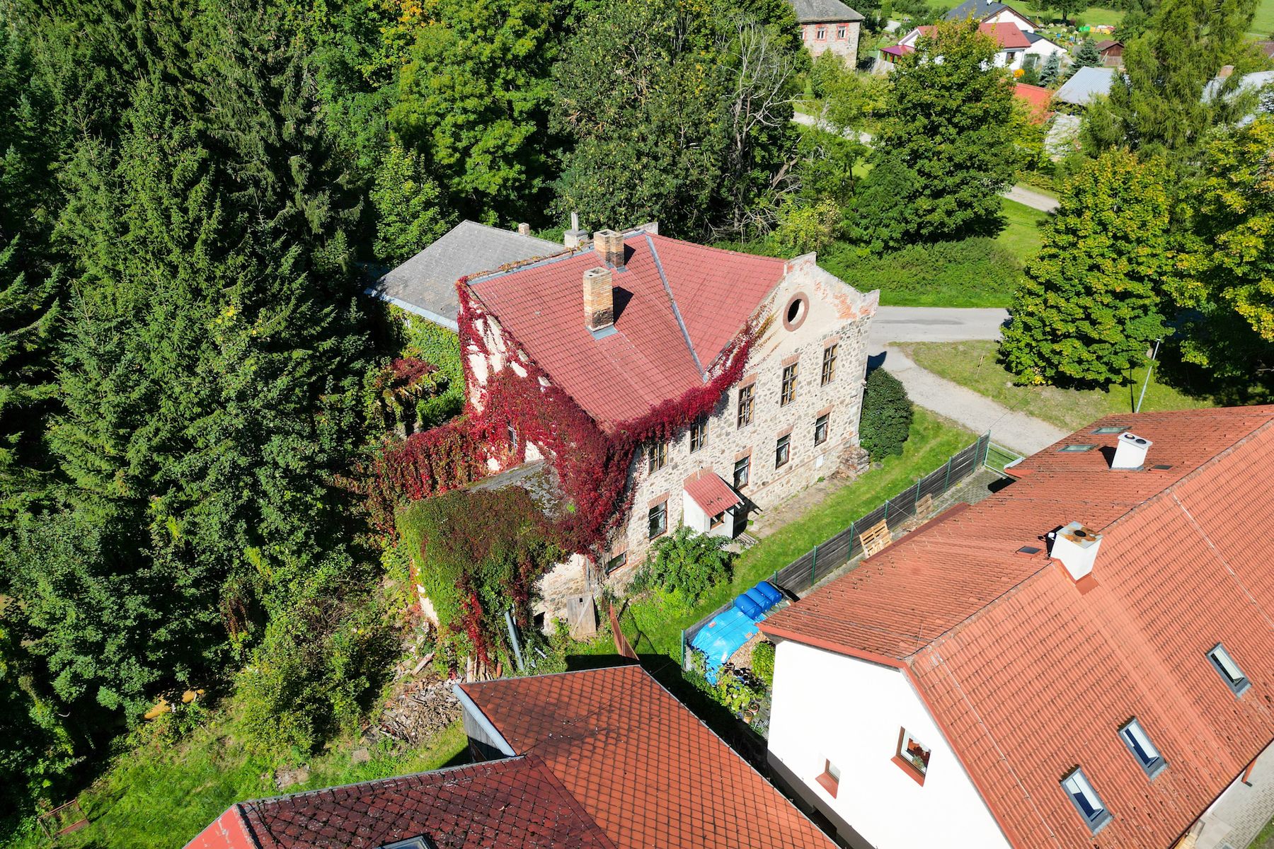 Dům je vybaven vlastní jímkou s trativodem a je připojen na obecní vodovod. Součástí je také zahrada o velikosti 572 m2 s krásným výhledem a bohatou vegetací. Na dům z jedné strany přiléhá zrekonstruovaný kamenný objekt z konce 19.st, který nyní již slouží ke komerčním účelům.