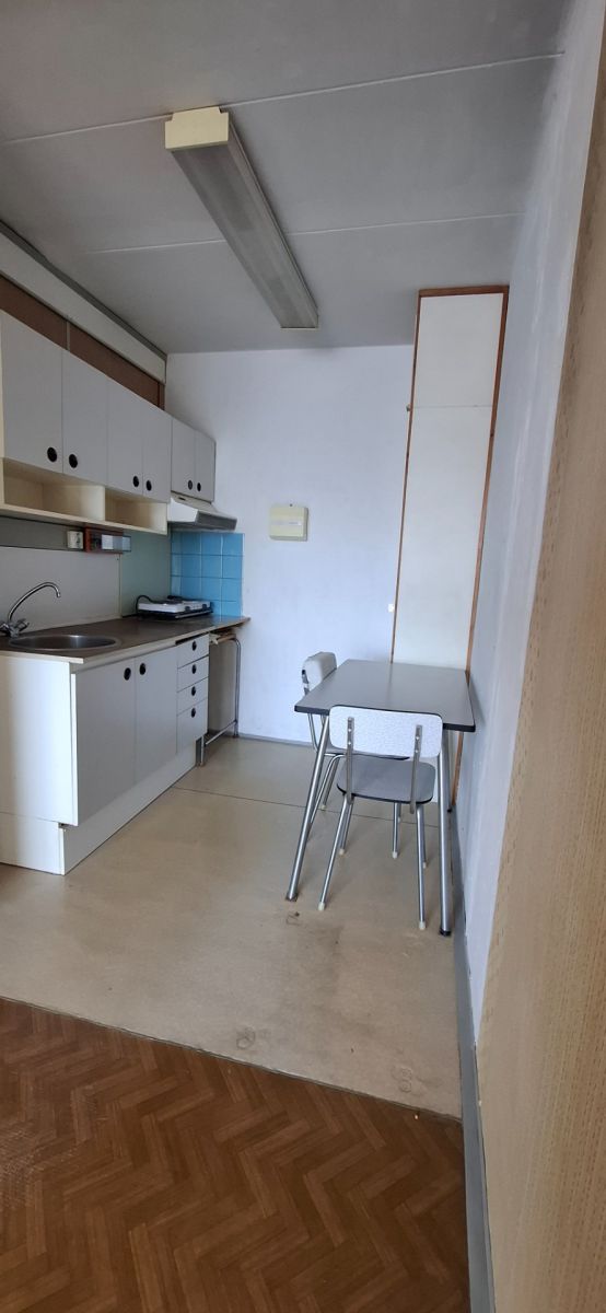 The apartment’s layout consists of a closed bedroom, a living room connected to the kitchen, a bathroom with a shower, and a separate toilet. It also includes a cellar with an area of 2.2 m². The building has undergone revitalization. The homeowners’ association takes proper care of the building, which is debt-free. Heating in the apartment is provided by centralized district heating. All local civic amenities can be found in the surrounding area.