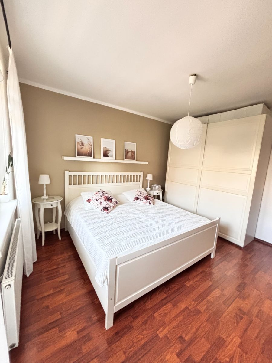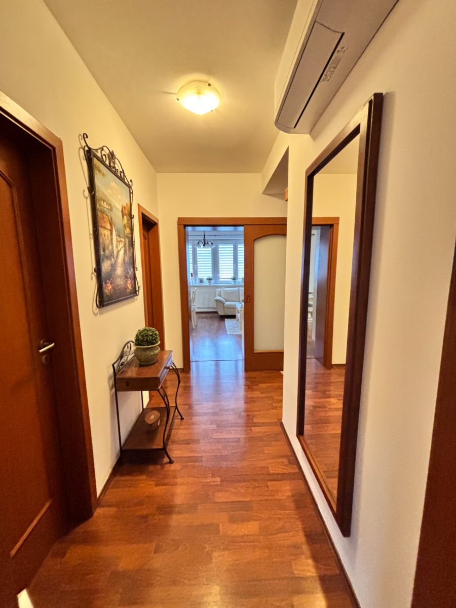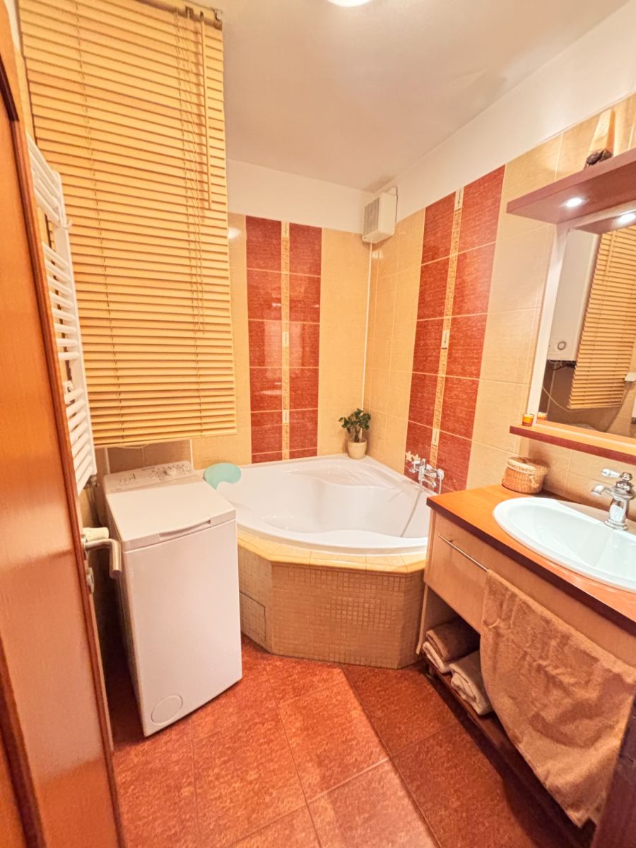 Vytápění je zajištěno vlastním plynovým kotlem a v bytě je k dispozici klimatizační jednotka.
