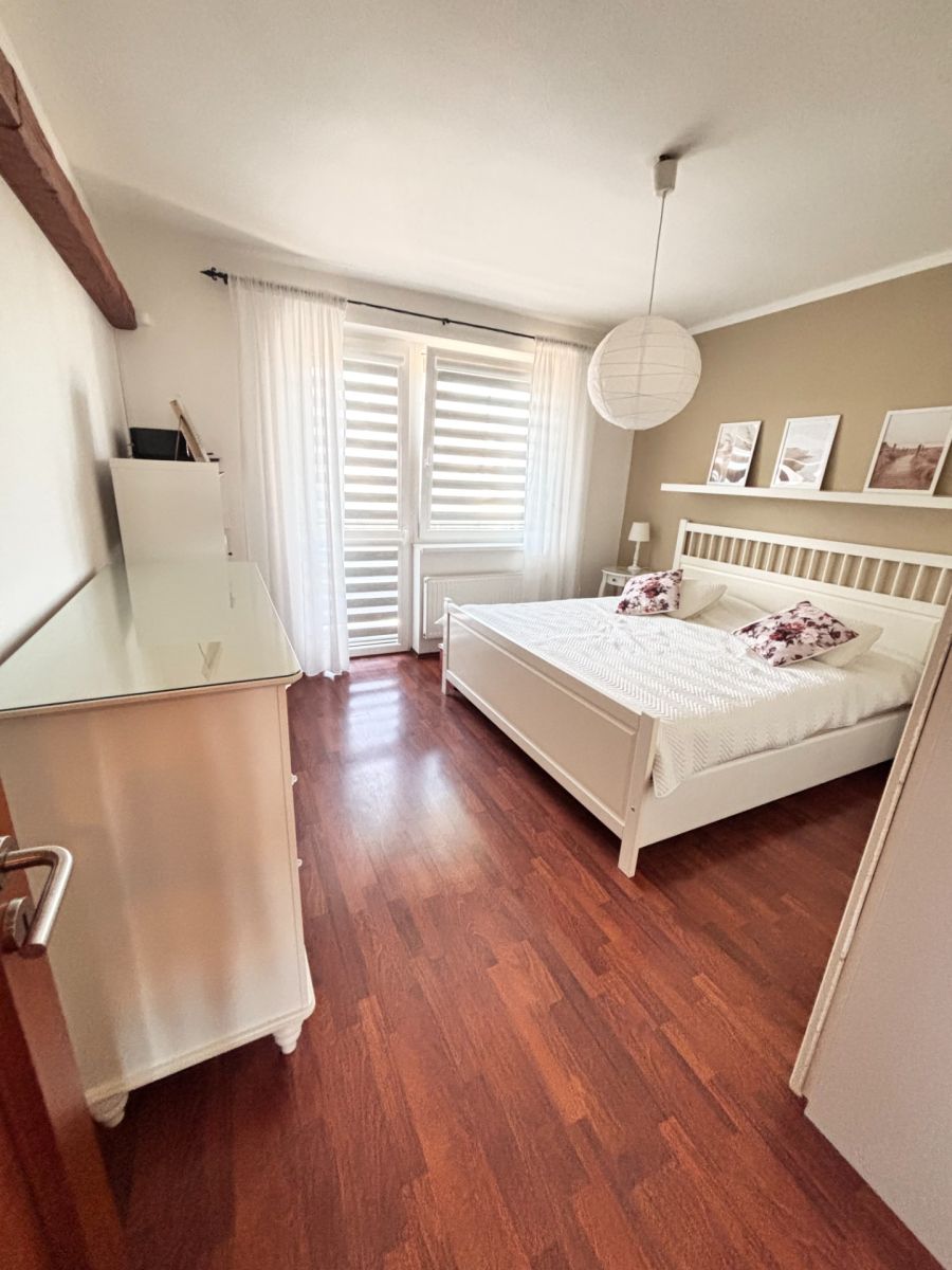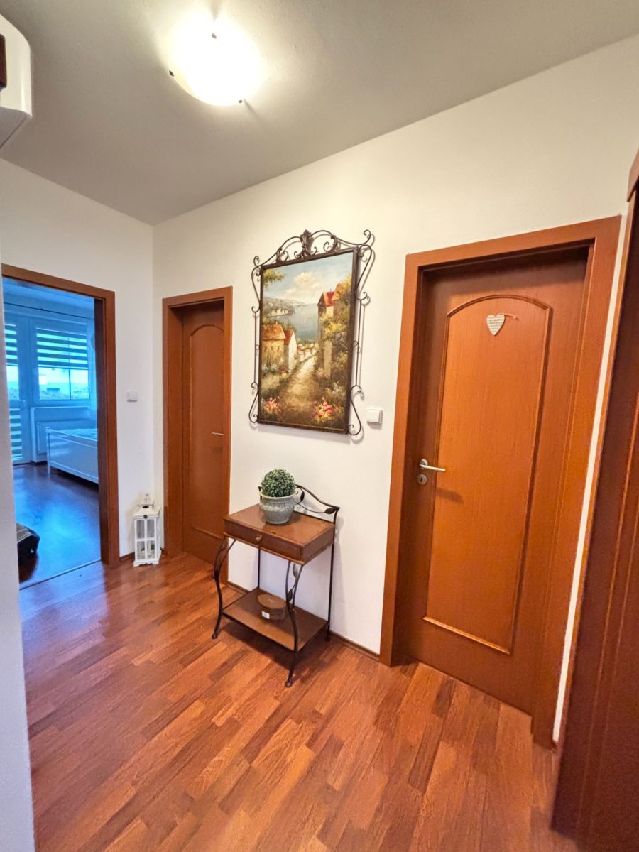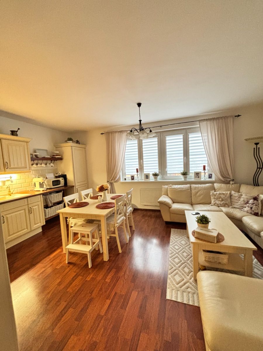 Interiér bytu je částečně vybavený, což umožňuje budoucímu majiteli přizpůsobit si bydlení podle osobních představ. Součástí nemovitosti je také útulný balkón o rozloze 4 m², kde lze vychutnat příjemné chvíle po náročném dni. Pro další úložné prostory je k dispozici sklep o ploše 2,8 m².