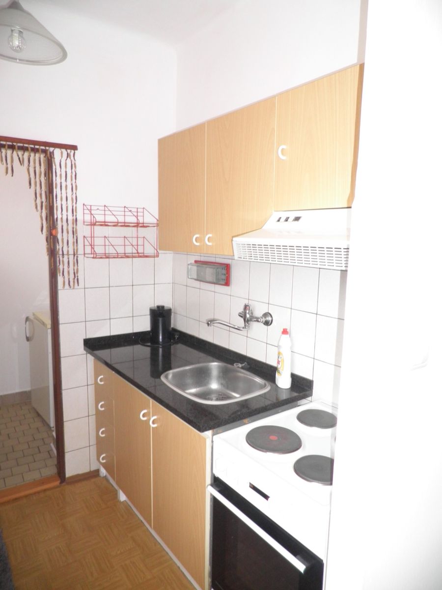 Částečně zařízený byt v 2,5 patře cihlového domu bez výtahu. CP bytu je 31,7 m2 – předsíň 4,8 m2, koupelna 3,6 m2, WC 1,0 m2, obývací pokoj s kuch. koutem 21,0 m2, spíž 1,3 m2. K bytu náleží sklep 2,5 m2. Byt je částečně zařízený – věšák, botník, vestavěná šatní skříň, pračka, šatní skříň, kuchyňská linka, elektrický sporák, mikrovlnná trouba, rychlovarná konvice, lednice aj. Ohřev vody bojlerem, vytápění aku kamny. Atraktivní klidná lokalita blízko centra. Pouze pro zájemce o dlouhodobý pronájem, nekuřáky, bez domácích mazlíčků.