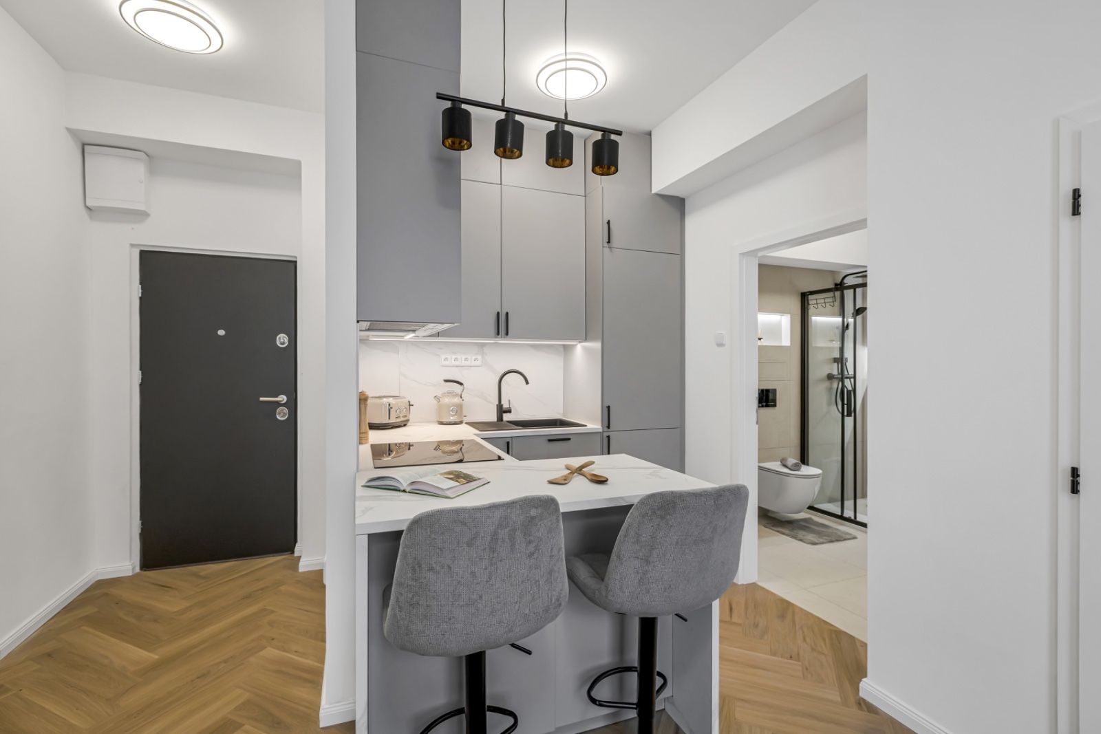 Byt zaujme na první pohled – díky promyšlené dispozici působí naživo mnohem větším dojmem. Vysoké stropy dodávají prostoru vzdušnost a eleganci. Nové podlahy podtrhují moderní charakter interiéru, luxusní koupelna nabízí komfort i styl a designová kuchyň je dokonale sladěná do posledního detailu.