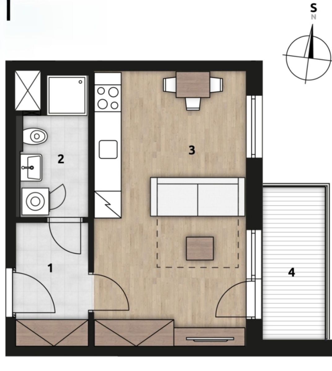 Byt je navržen s důrazem na funkčnost a estetiku. V předsíni naleznete prostorné prosklené skříně, které opticky zvětšují prostor a nabízejí dostatek úložného místa. Kuchyňský kout je vybaven sklokeramickou varnou deskou a lednicí s mrazákem. Celý objekt je postaven v nízkoenergetickém standardu třídy B, což zaručuje velmi úsporný provoz.