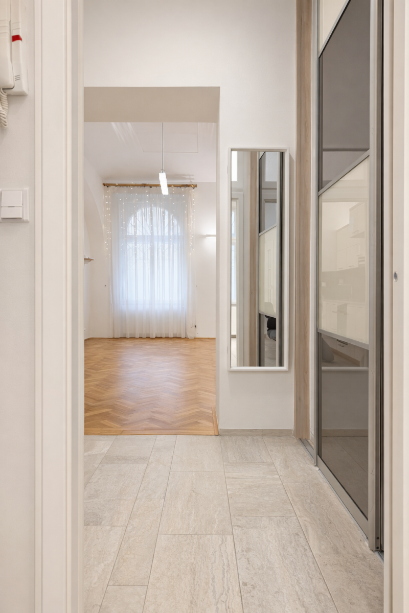 Nabízím k dlouhodobému pronájmu elegantní a kompletně zrekonstruovaný byt 2+1 o velikosti 56 m², situovaný v 1. NP historického domu Ú Čápa v klidné ulici Všehrdova, Praha 1 – Malá Strana.