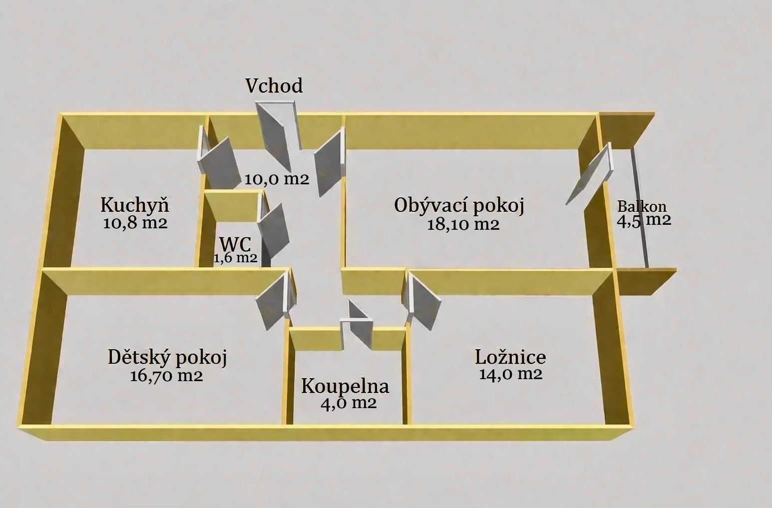 Celková plocha činí 81,4 m², podlahová plocha je 75,2 m² k tomu je balkón o ploše 4,5 m², ideální pro relaxaci či pěstování květin. K bytu náleží také sklep o velikosti 1,7 m², který poskytuje další potřebný úložný prostor.