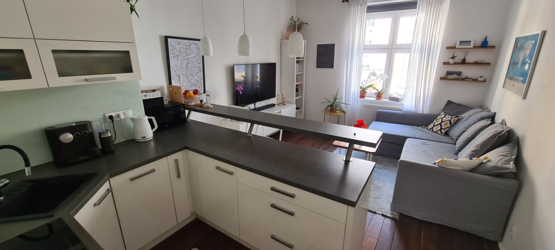 I offer for rent a modern, fully furnished 2+kk apartment facing a very quiet courtyard, located in a newly renovated brick building. The property is in excellent condition and, thanks to its high-quality furnishings, provides comfort and convenience across 45 m². The apartment is situated on the first floor and is easily accessible by elevator, ensuring convenient access throughout the building.