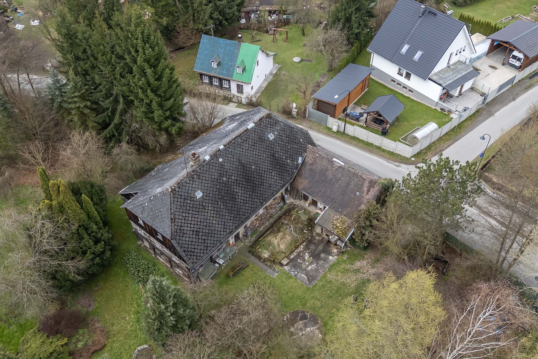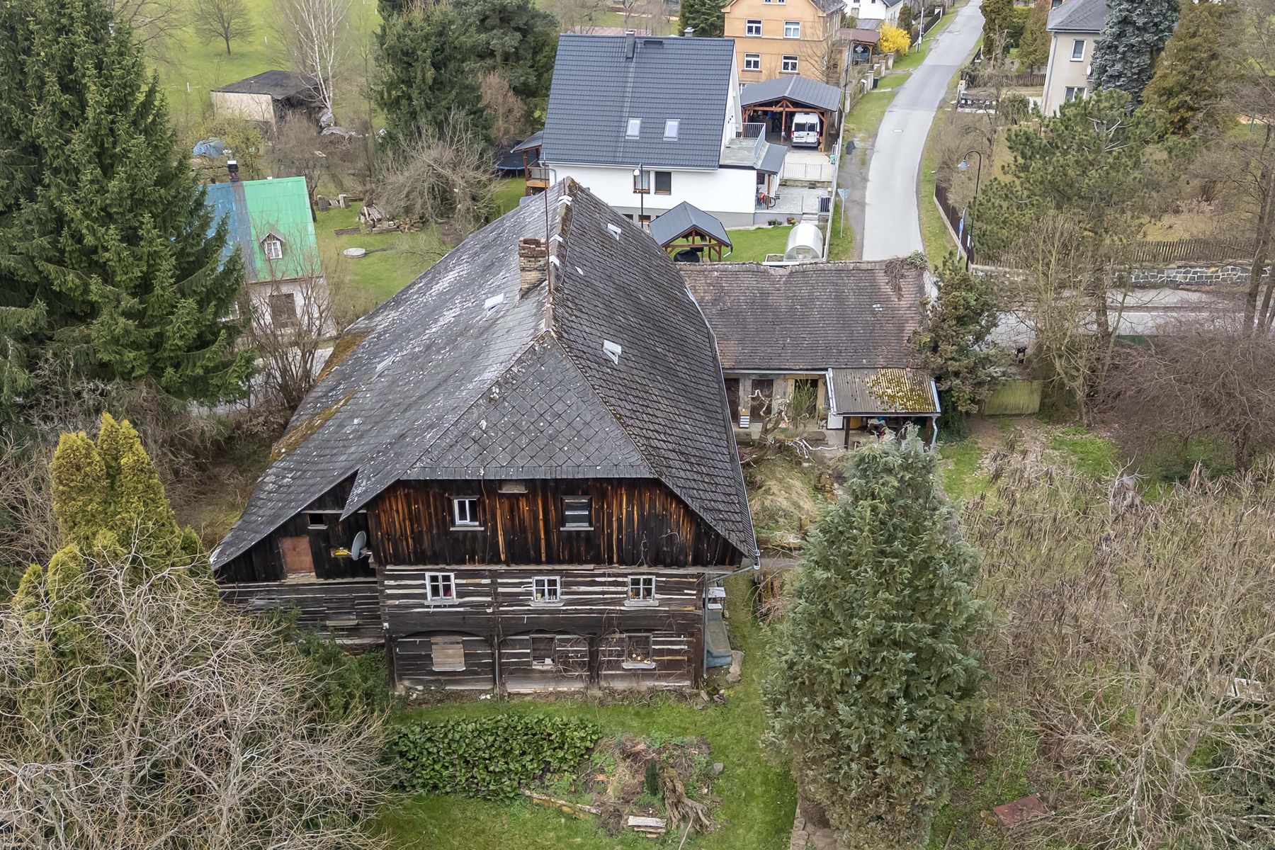 Dům o celkové užitné ploše 350 m2 představuje skvělou příležitost pro ty, kteří chtějí vytvořit své vysněné bydlení podle vlastních představ, případně využít dispozice objektu pro vytvoření ubytovacích (komerčních) prostor.