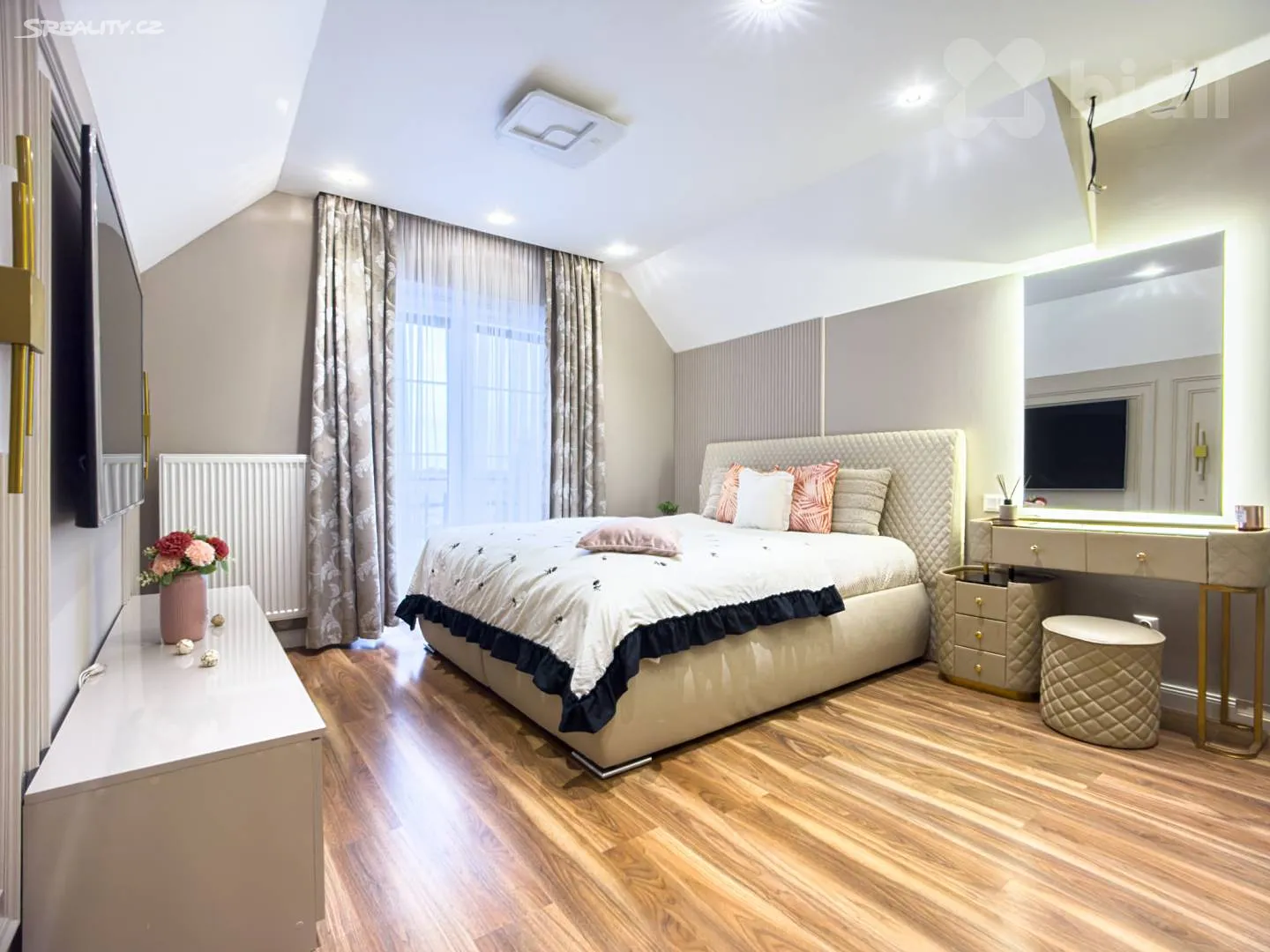 • Patro: 3 ložnice (jedna s vlastním balkonem), 2 moderní koupelny s WC.
