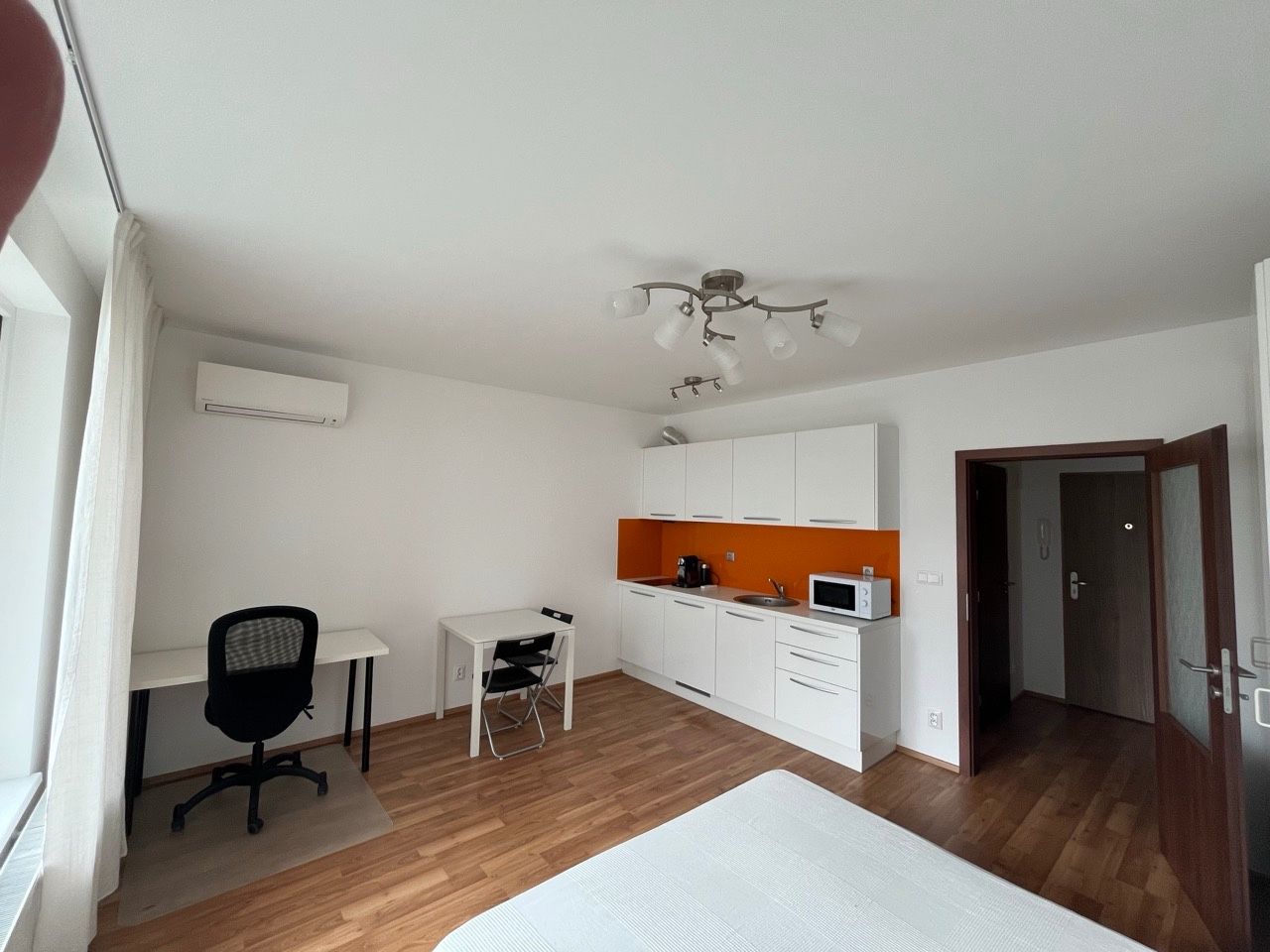 Kuchyňská linka je moderní, vybavena lednicí, indukční varná deska, kávovar, mikrovlnná trouba.