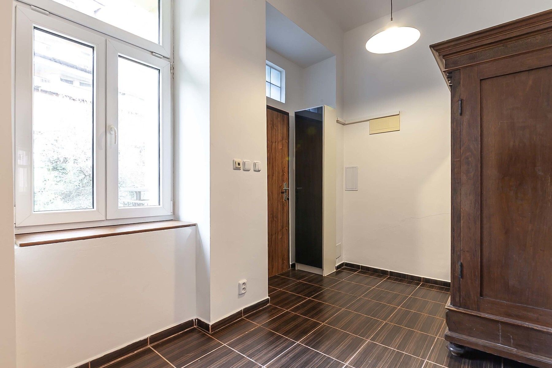 Byt s jedinečnou atmosférou se nachází ve 3.nadzemním podlaží stylového bytového domu s výtahem, vstupní hala otevírá výhled směrem na chráněné území Dívčí hrady s přírodní památkou Ctirad a poskytuje tak soukromí bez pohledových ataků; hlavní obytný prostor je orientován východním směrem do Křížové ulice. Byt tvoří vstupní hala s kuchyní (16,4 m2), obývací pokoj (19,4 m2), koupelna a samostatné WC. Ve stejném podlaží je z původní pavlače přístupná komora. Uživatelský komfort zajišťuje elektrické podlahové vytápění ovládané jednotlivými termostaty, ohřev vody řeší elektrický bojler o objemu 125 litrů. Nízké měsíční poplatky SVJ: 3 420,- Kč.