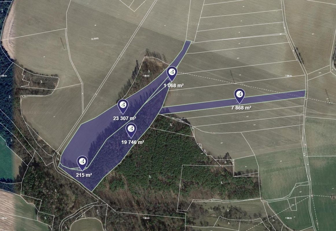 • Parcela č. 265/2 - o výměře 1068 m² (Lesní pozemek)