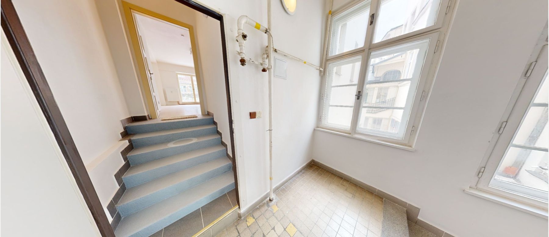 Byt se nachází ve druhém patře historického domu.