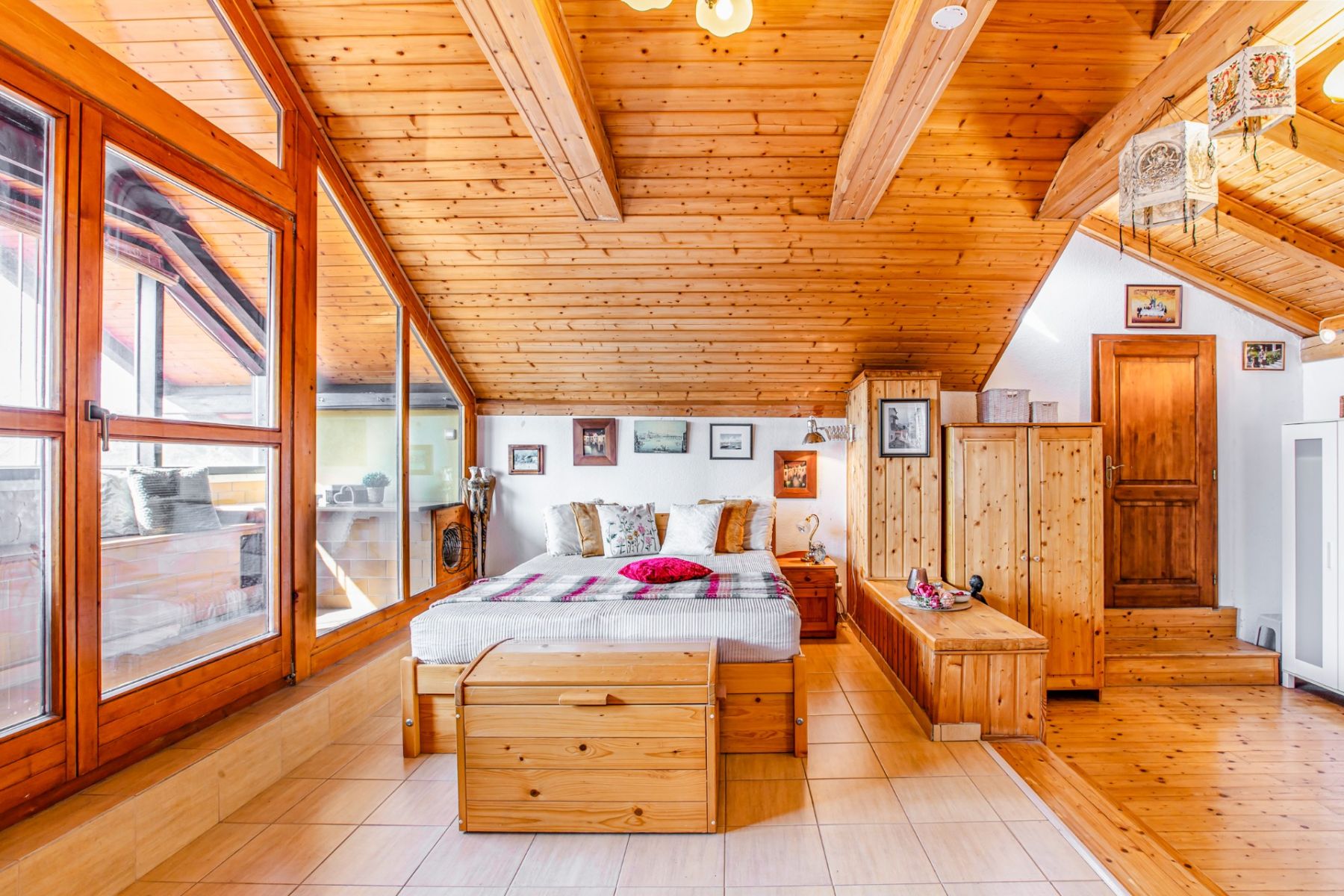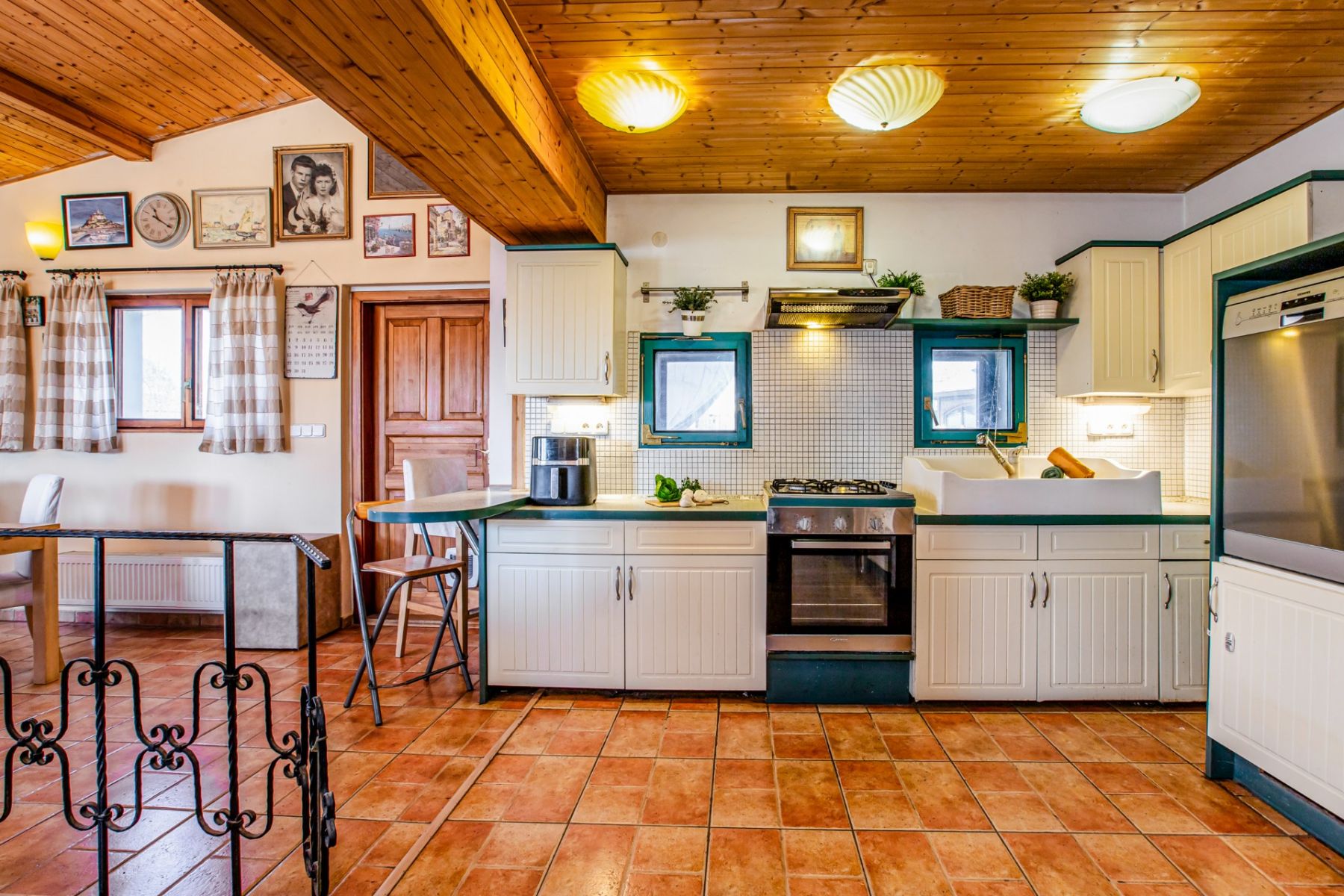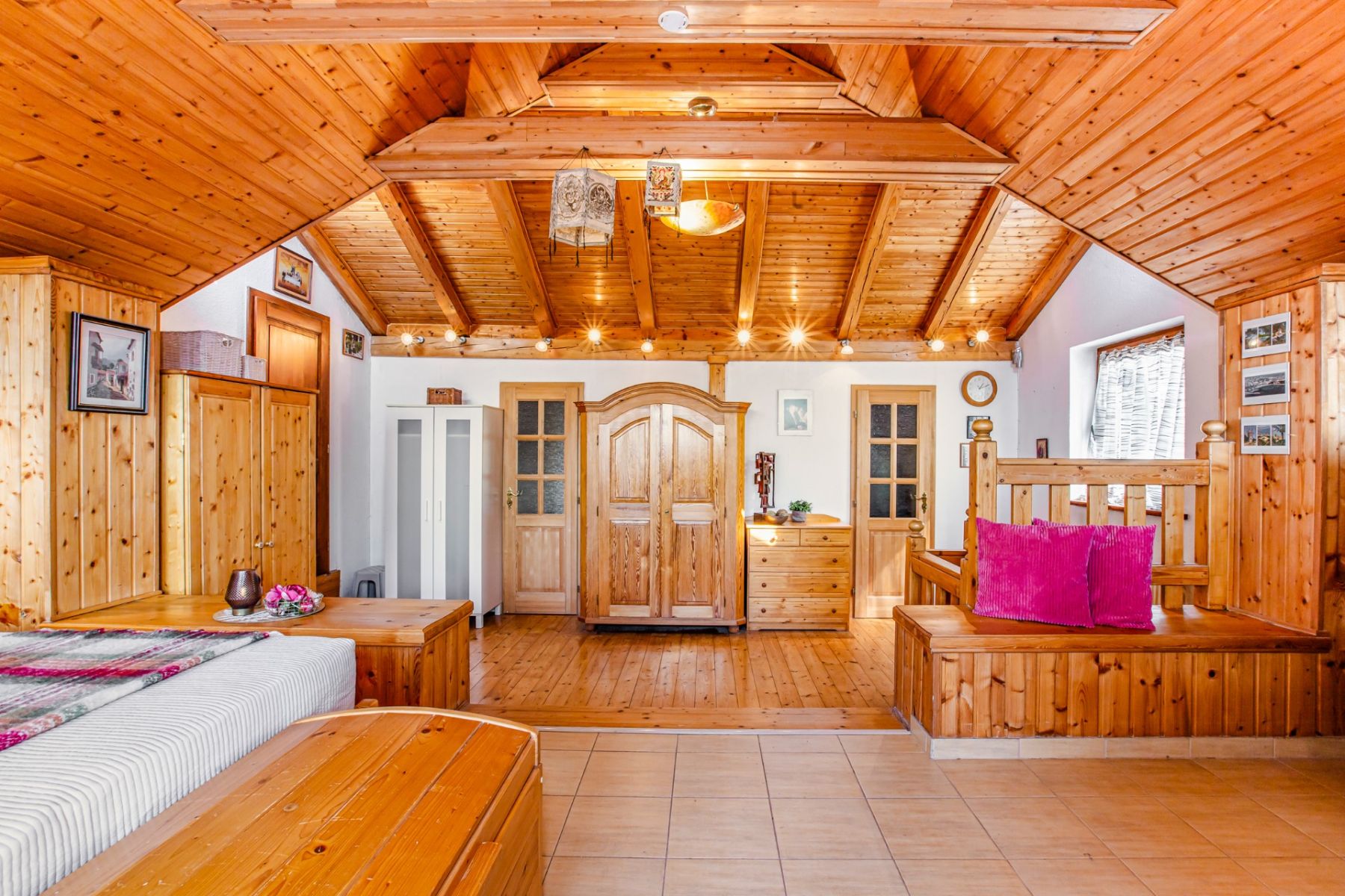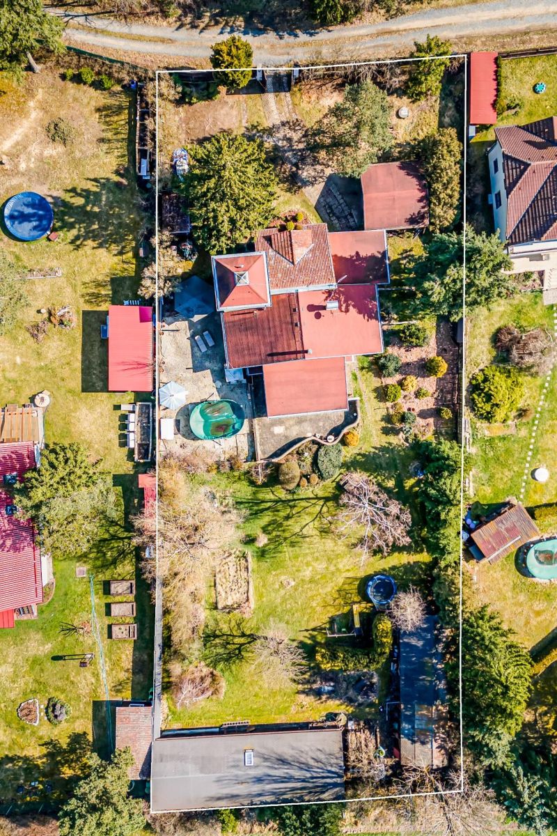 Původní chata prošla dvěma zásadními rekonstrukcemi s výrazným rozšířením. Výsledkem je domov, který působí útulně, ale zároveň překvapí svou velikostí a funkčností. Ve třech podlažích najdete atypické dispoziční řešení, dvě koupelny, dvě kuchyňské zóny a dokonce i relaxační místnost v nejvyšším patře. Dominantou domu je velká obytná místnost s kuchyní a vysokým stropem (51 m2), ze které je přímý vstup na velkou terasu (42 m2) orientovanou na jihozápad – ideální na dlouhé večery se sklenkou vína a výhledem do krajiny. Pozemek nabízí nejen soukromí, ale i bohaté zázemí: kryté parkování pro dva vozy, venkovní kuchyni s posezením a grilem, bazén (20 m³), altán, dětské hřiště, dílnu a prostorné sklady. Součástí domu je také vinný sklípek (2,3 m²) a malý pivní sklípek, oba přístupné zevnitř domu. Užitná plocha činí 183 m² bez venkovní kuchyně a zastřešené části.