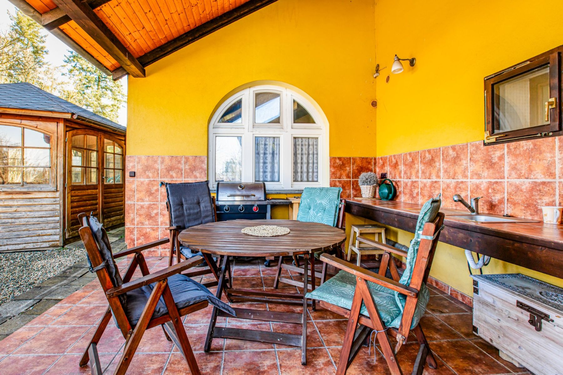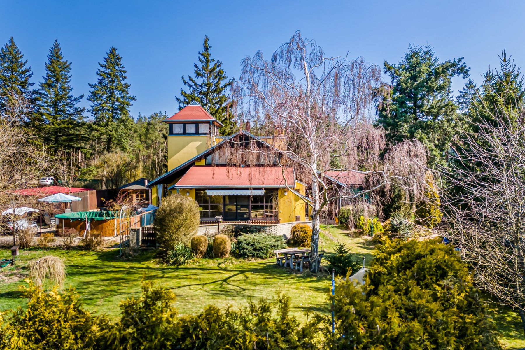 • bazén, venkovní kuchyně, altán, dílna, kryté parkování, sklady,