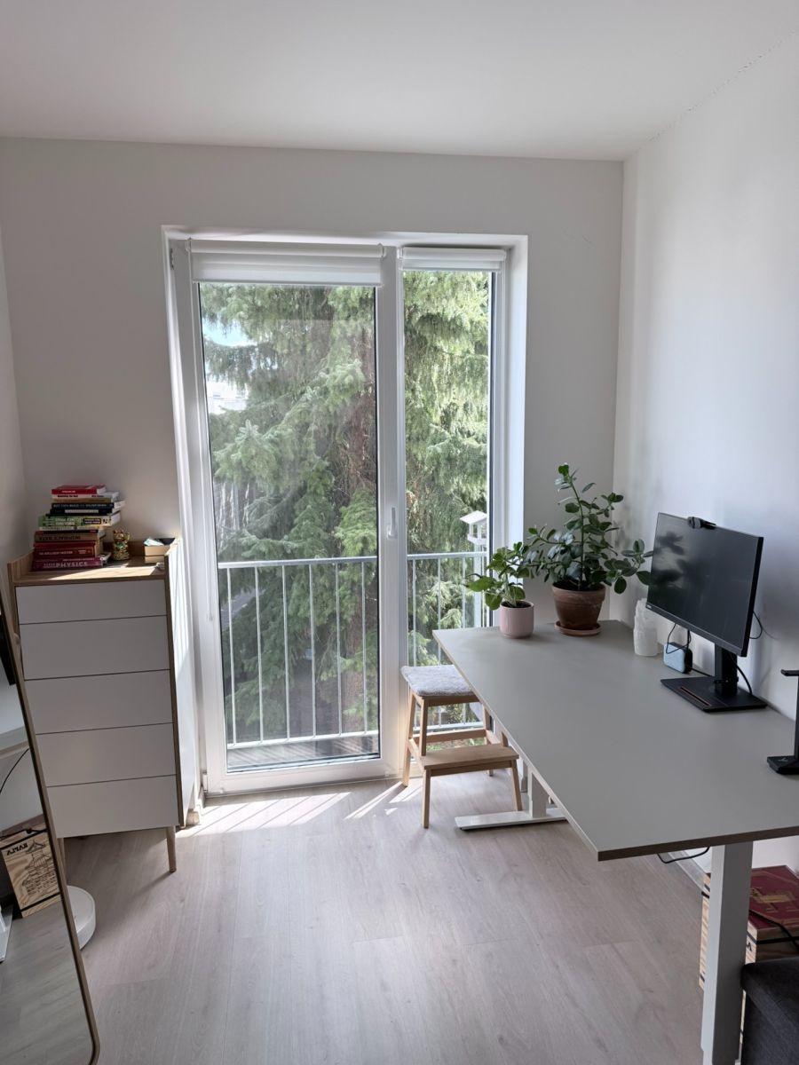 The apartment is fully furnished (except for the bed and washing machine) and designed as a cohesive, stylistically coordinated whole – all built-in furniture was custom-made by a professional studio. As a result, the apartment feels clean, modern, and functional.