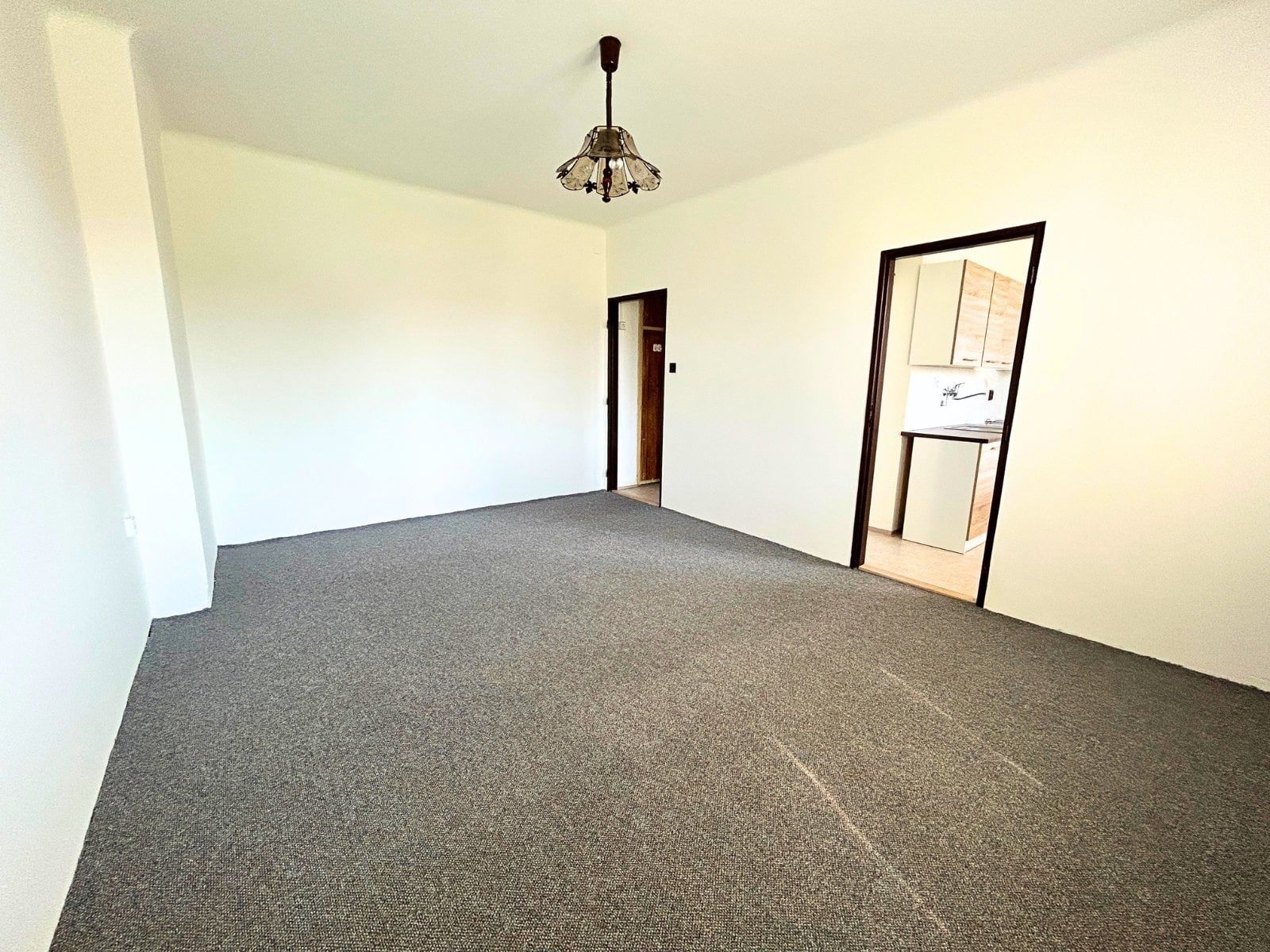 Dispozice bytu nabízí kuchyňský kout a navazující obývací pokoj. Celý prostor je ponechán bez nábytku, aby si jej budoucí nájemníci mohli uzpůsobit svým potřebám. Výhodou je také prostorná, neprůchozí ložnice přístupná z chodby, která zajišťuje dostatek soukromí i klidu.