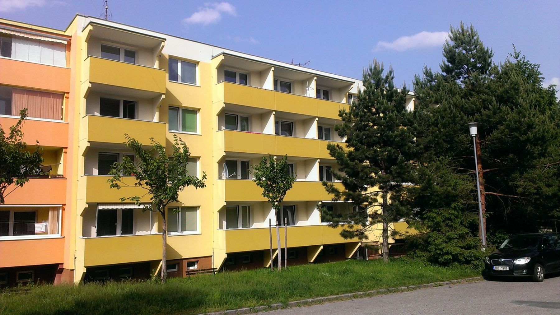 Byt se nachází ve čtvrtém a zároveň posledním podlaží budovy, není k dispozici výtah. Možnost parkování před domem.