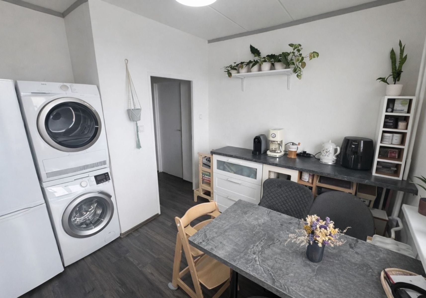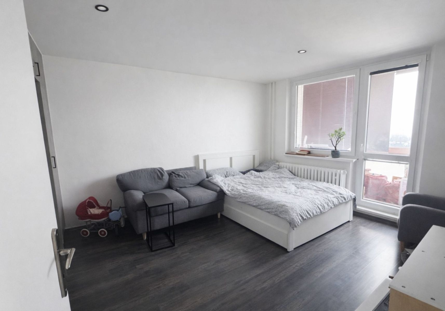 Vybavení bytu: plovoucí podlahy, interiérové dveře, prostorná vestavěná skříň, kuchyňská linka včetně spotřebičů (varná deska, trouba, myčka, lednice).