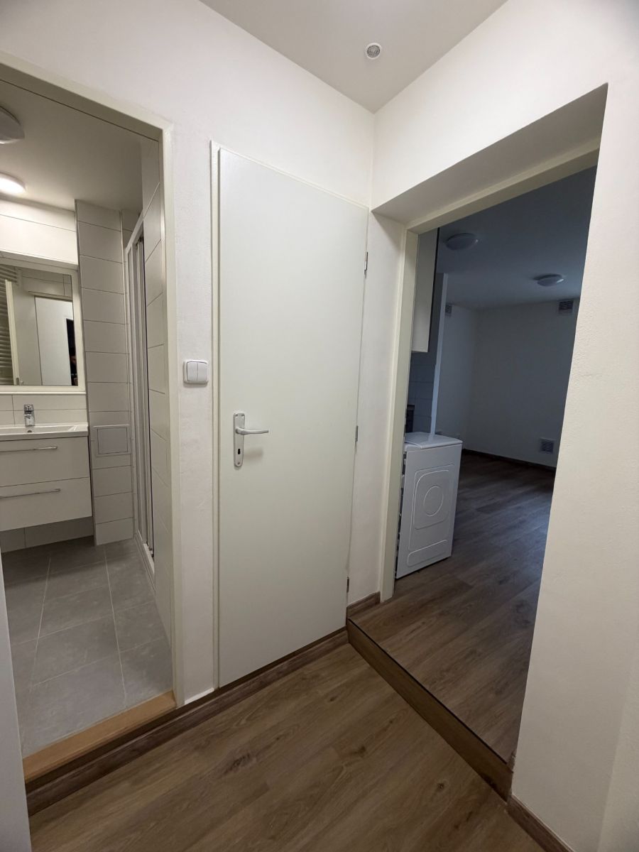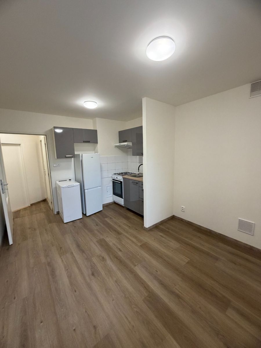 Nabízím k pronájmu čerstvě po rekonstrukci byt 1+kk (vstupní chodba, kuchyňský kout v hlavní místnosti, koupelna) o rozloze 25 m², který se nachází v cihlové budově čtyřpatrové konstrukce. Byt se nachází v suterénu a je kompletně suchý. Stav nemovitosti je velmi dobrý - zateplení i plastová okna. Byt je vybaven pračkou a lednicí. Stačí si dovézt vlastní postel, skříň a stůl se židlí - můžeme ale po domluvě zařídit také. Podlahové topení i topné těleso (elektrický kotel). Za domem soukromá zahrada k užívání nájemníkům v domě. Parkování je možné v modré zóně před domem (zóna C).