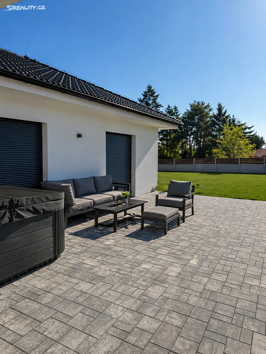 I offer for sale an exceptional new build of a modern family home in bungalow style with a 4+kk layout, representing the perfect combination of timeless architecture, quality materials, and tranquil living in a green environment – just 30 minutes from the center of Prague and approximately a 7-minute drive from Říčany, which have consistently ranked among the top cities for living in the Czech Republic.