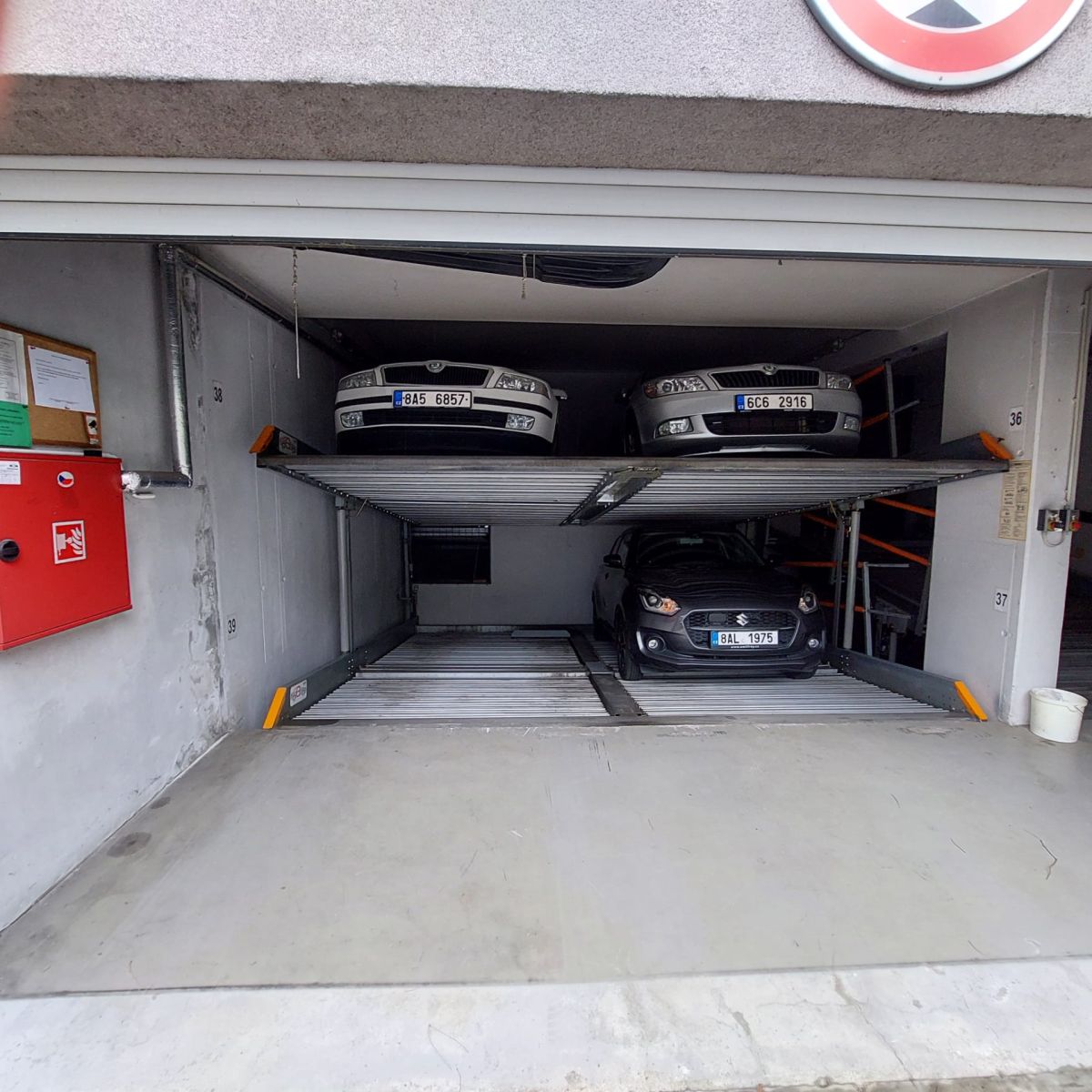 I offer for rent a garage parking space with its own separate entrance from Štichova Street. The parking spot can be seen in the photograph in the lower left corner on the platform, space no. 39.