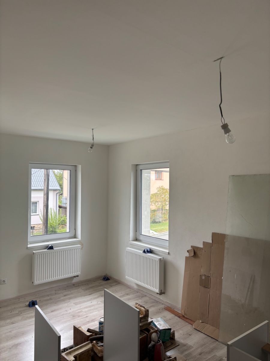 I offer for rent a cozy and modern 2+1 apartment in a completely renovated building. This 52 m² apartment is located on the first floor of a single-story building, preserves the original wooden door, and is very bright. The apartment is equipped with a new, fully furnished kitchen unit with a dishwasher, stove, and oven. The rooms are furnished but can be further decorated by agreement – with the cost reflected in the price. The apartment features a small balcony accessible from the bathroom, which includes a shower and a washer-dryer. One parking space is assigned to the apartment. The building contains a total of three apartments that are being completed gradually and will also be available for rent, including parking spaces.