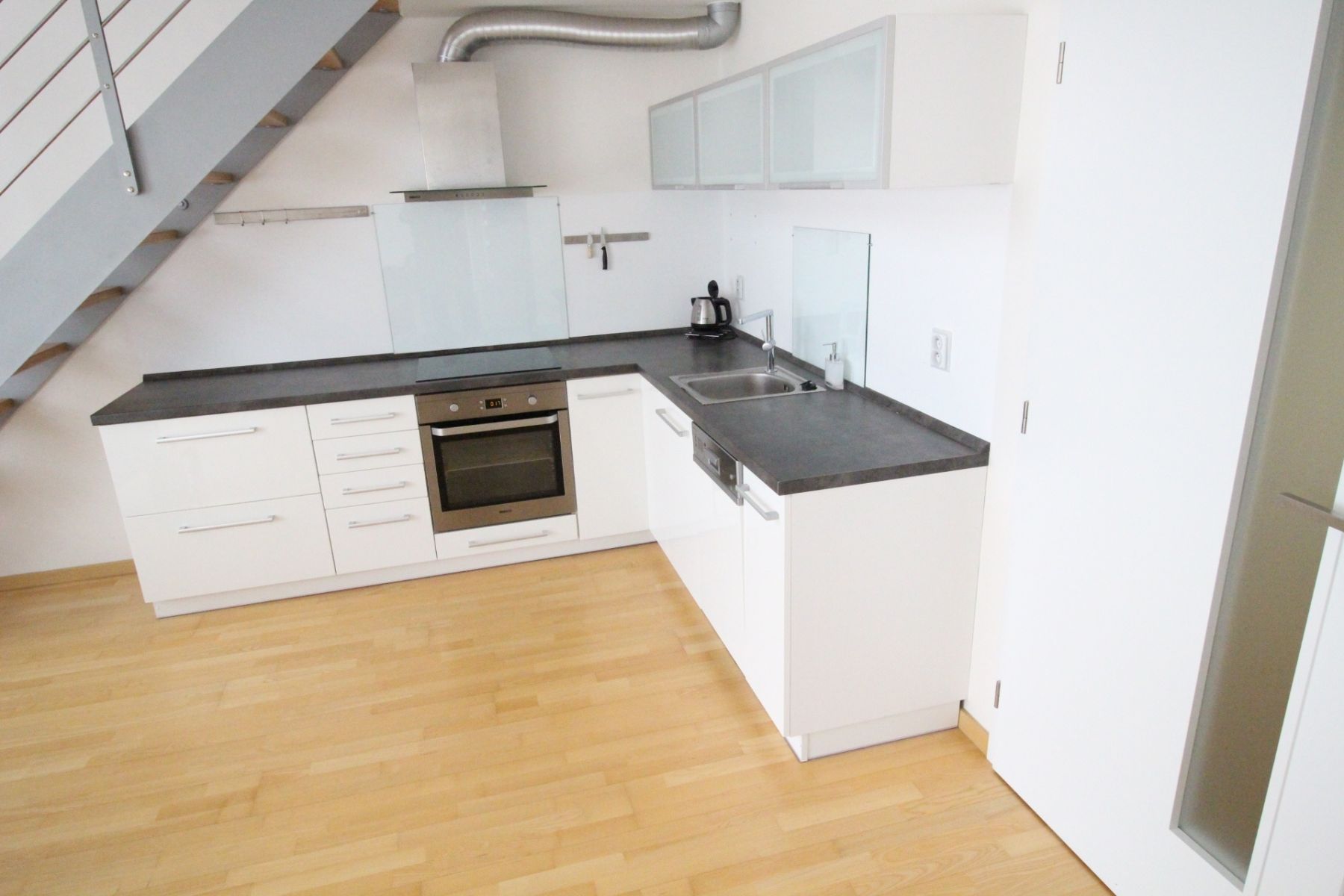Tento krásný byt je kompletně zařízený. V bytě je dostatek světla díky velkým oknům. Dominantou bytu je kuchyně spojená s obývací částí. Kuchyňská linka disponuje elektrickou varnou deskou, elektrickou troubou, digestoří, vestavěnou lednicí s mrazákem a myčkou na nádobí. Obývací část bytu nabízí jídelní stůl se židlemi, stolek, pohovku a jiné. Ložnice, která je umístěna v patře je vybavena manželskou postelí a prostornou vestavěnou skříní. Moderní koupelna je vybavena vanou se sprchovým koutem, toaletou a pračkou. V chodbě je velká vestavěná skříň pro uložení vašich věcí.