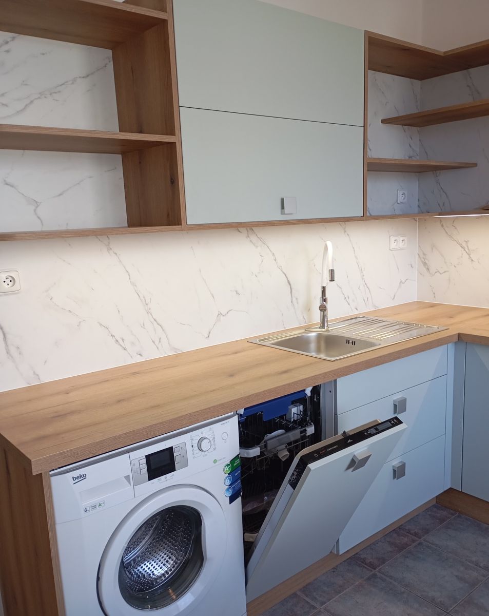 Byt je po rekonstrukci s novu kuchyňskou linkou vybavenou vestavěnou myčkou, pračkou, sklokeramickou deskou, troubou a digestoří. V koupelně se nachází prostorný sprchový kout. K bytu náleží uzamykatelná komora na patře.