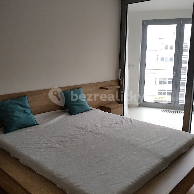 A brand new luxury apartment on the top floor of a newly built building. It features a heated winter garden and a closed underground double garage. The owner is ready to co-distribute the apartment. View of the Pod Palmovka theater and the adjoining square.