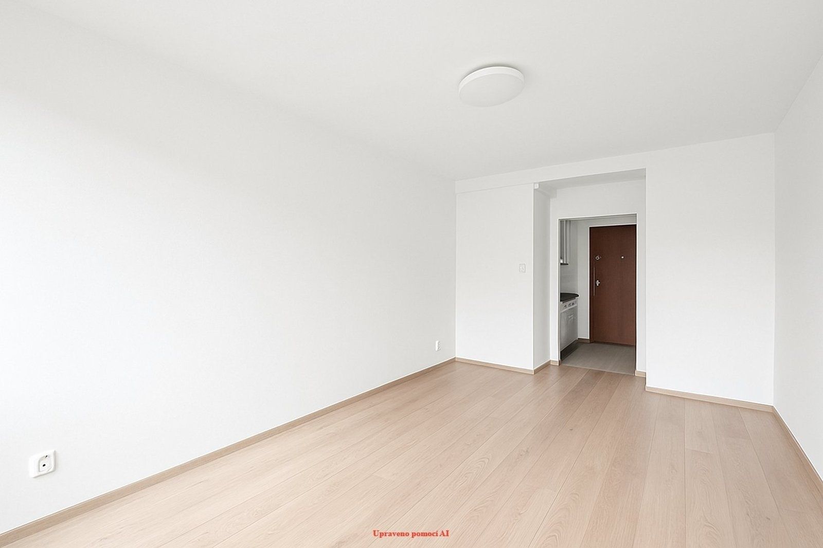 Interiér působí moderně a svěže. V pokoji je plovoucí podlaha, která dodává prostoru čistý a elegantní vzhled. Nechybí moderní kuchyňská linka s digestoří – ideální pro rychlé snídaně i večerní vaření. Koupelna s vanou je spojena s WC a nabízí příjemné místo pro každodenní relax.