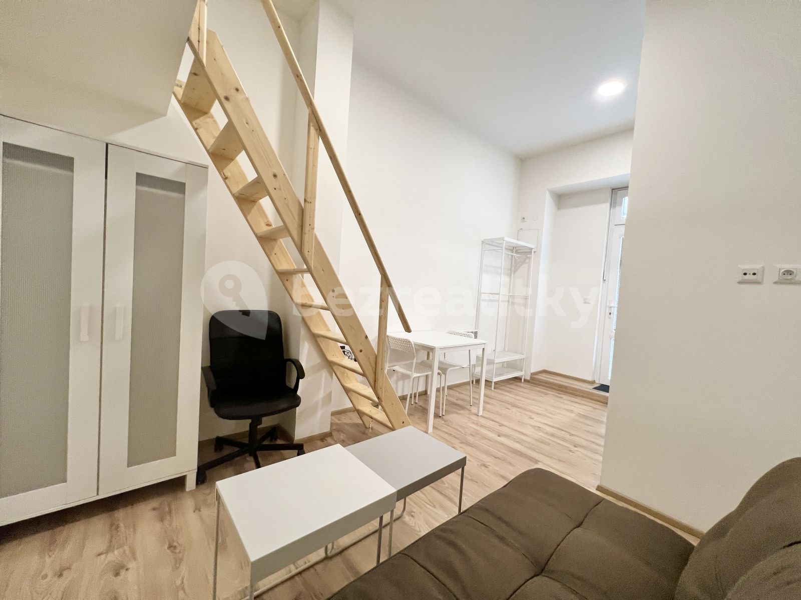 This is a sublease of a fully equipped unit with a 1+kk layout in a newly renovated house. It includes a fully equipped kitchenette including a refrigerator, ceramic hob, microwave, kettle, extractor hood and sink. The unit is equipped with a work and dining table with chairs, a comfortable couch, a mezzanine sleeping area with bedside tables, lamps and a spacious wardrobe. The bathroom offers a shower, toilet and sink with a mirror. There is a preparation for connecting your own washing machine.