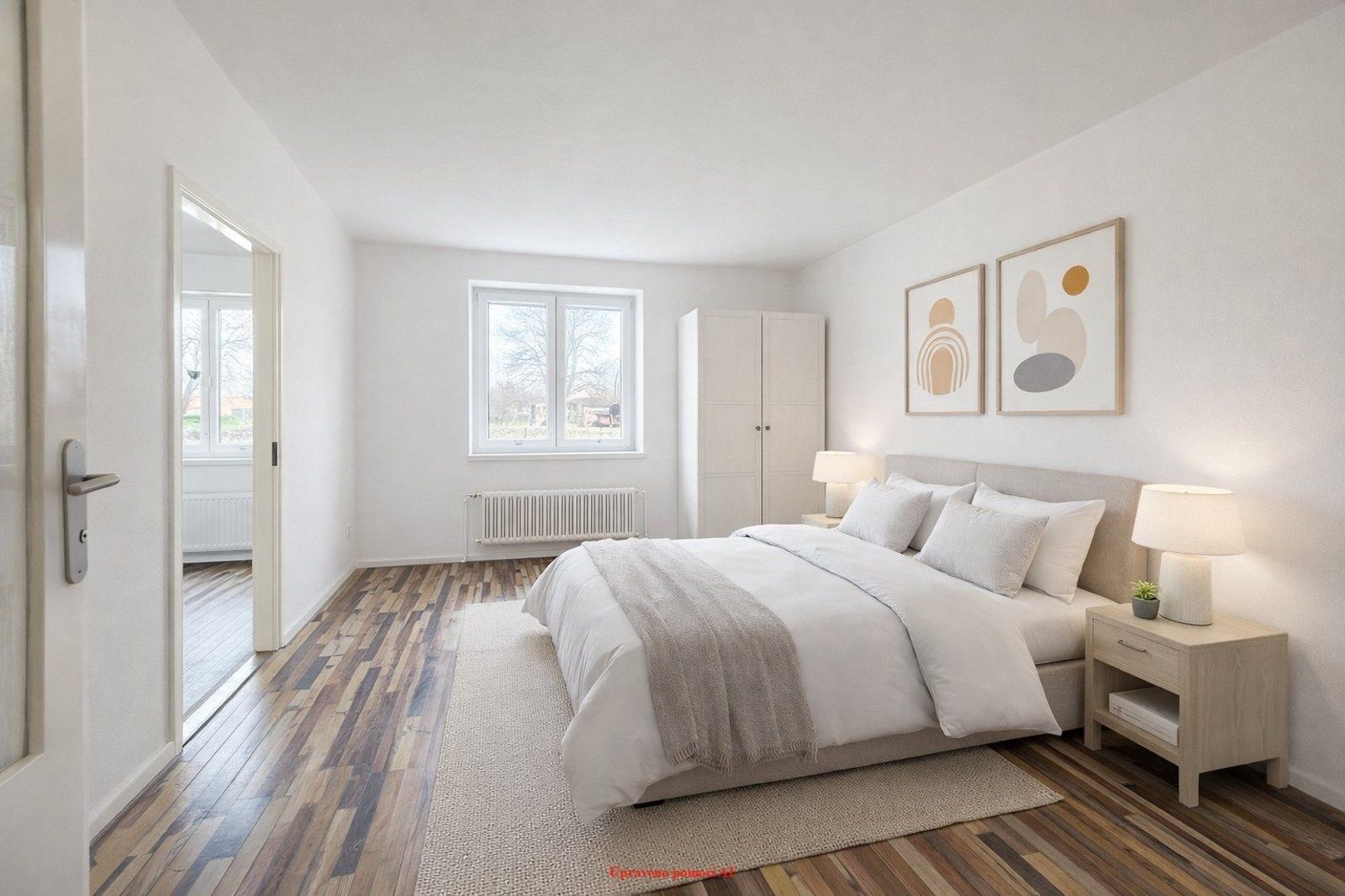 Byt zaujme již při vstupu svou harmonickou atmosférou a důrazem na detail. Interiér je laděn v moderním, nadčasovém stylu, který podtrhují kvalitní plovoucí podlahy v obytných místnostech. Prostor působí svěže, vzdušně a velmi příjemně.