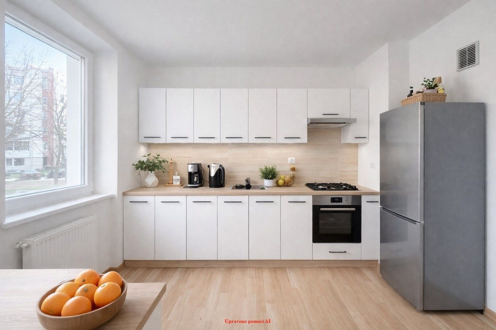 Kuchyně je vybavena kuchyňskou linkou s vestavěnými spotřebiči, konkrétně plynovou varnou deskou a elektrickou troubou, takže máte vše potřebné pro pohodlné vaření.