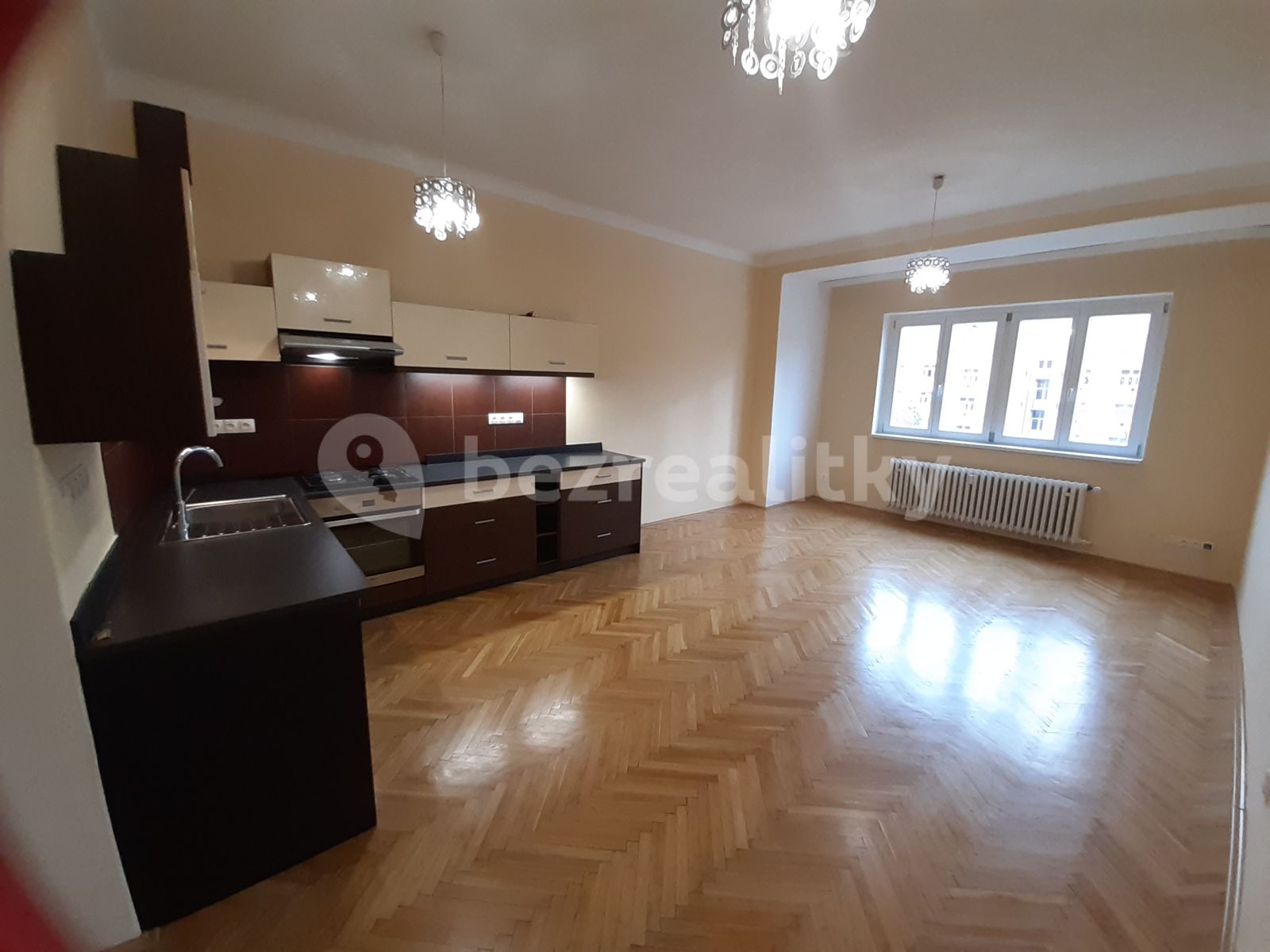 The apartment is located on the 4th floor (5th floor out of 6) in a reconstructed brick building with an elevator, layout 4+kk with an area of approx. 96m2 (2x bedrooms, 1x study with loggia/or smaller bedroom, living room with kitchenette, hall, separate toilet, bathroom with bath, cloakroom, cellar available in the basement; North (street) - south orientation. The apartment has original sanded parquet floors and double-glazed windows There is a central heating system in the house. The kitchen is equipped with a gas hob, an extractor hood and a dishwasher. The apartment can be equipped with a refrigerator for living, spacious and bright, the house is quiet.The advantage is the proximity of tram and bus connections to the center (metro A, B, C), parks Vítkov, Židovské pece or Parukářka, cinema Aero and a number of shops in the vicinity.