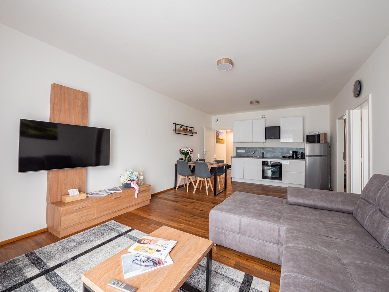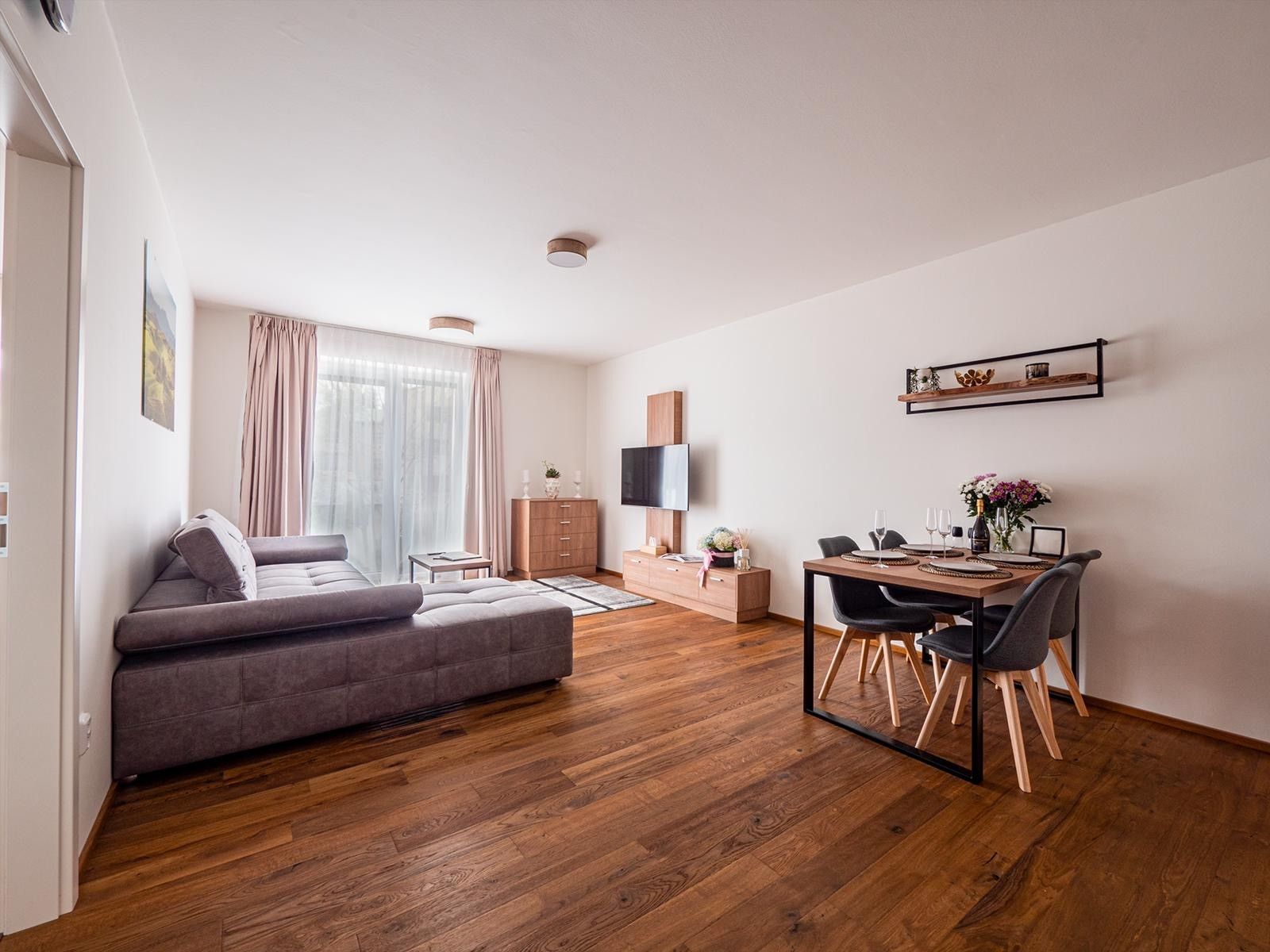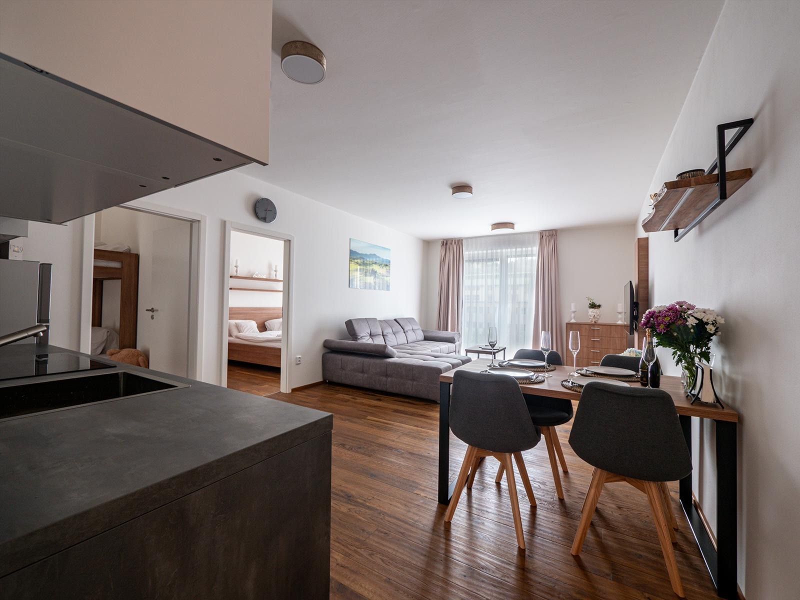• Prostorný obývací pokoj s kuchyňským koutem a rozkládacím gaučem