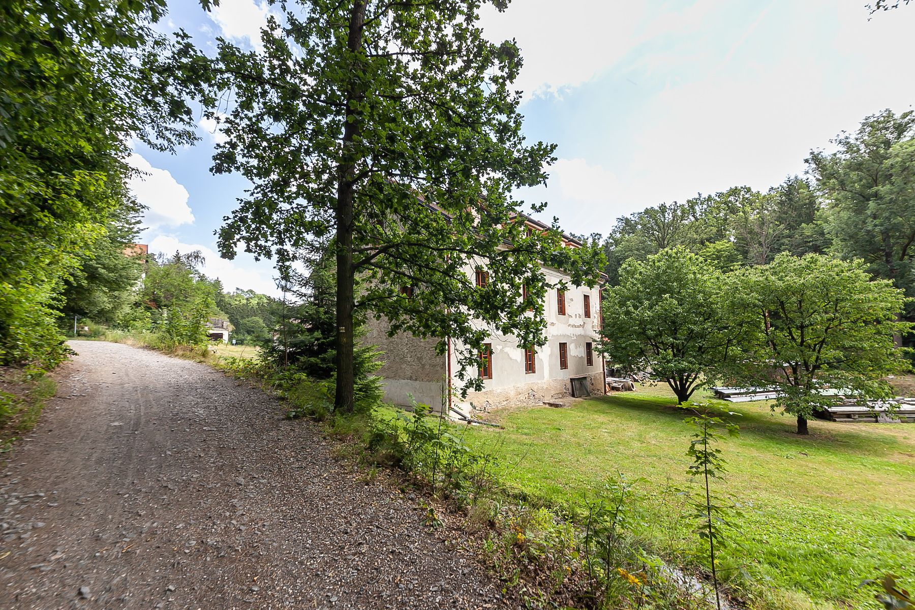 - rozlehlý rovinný pozemek o rozloze 3687 m2 nyní se 2 objekty, nevyčerpanou zastavěností a vlastním parkovištěm;