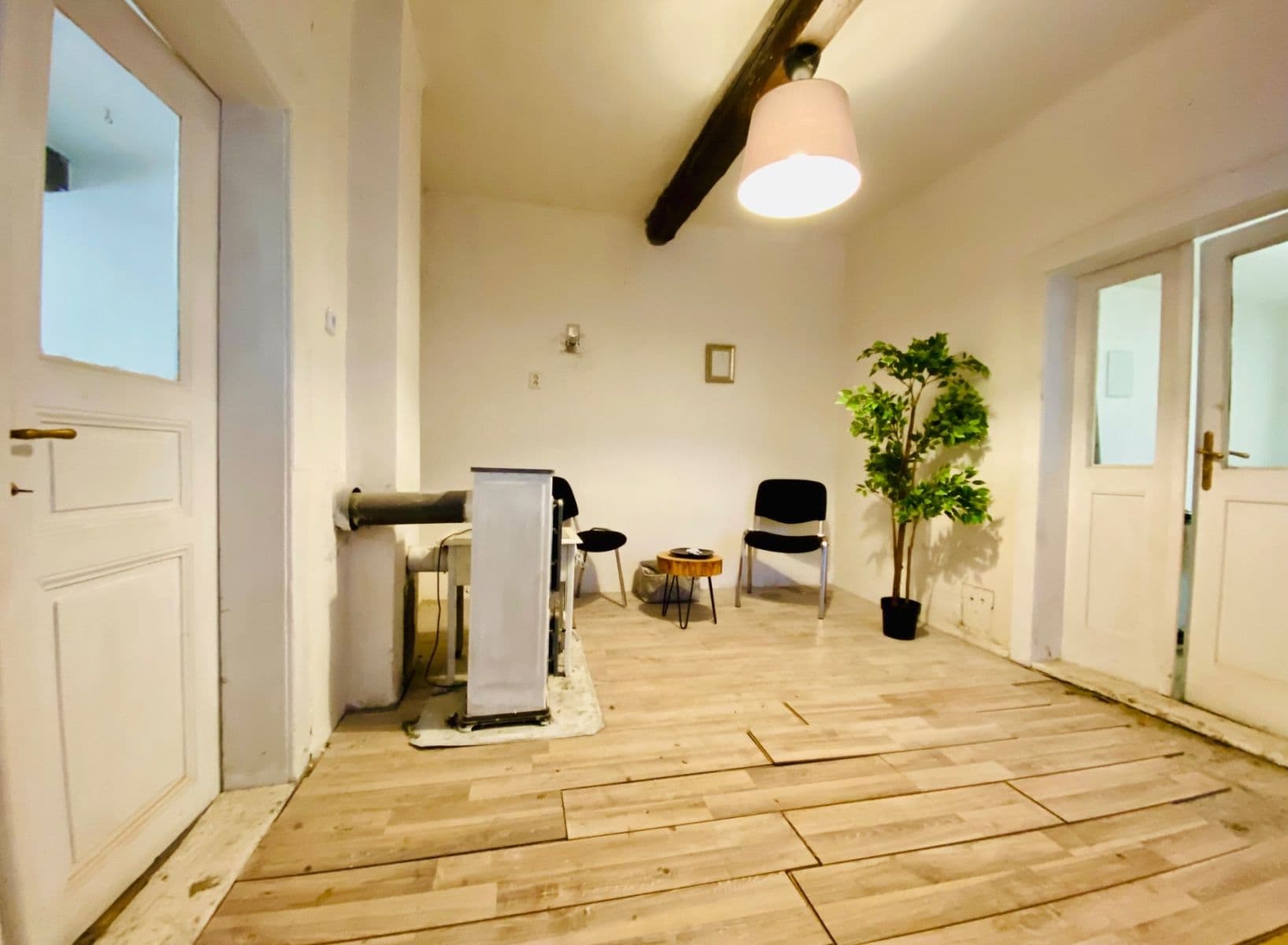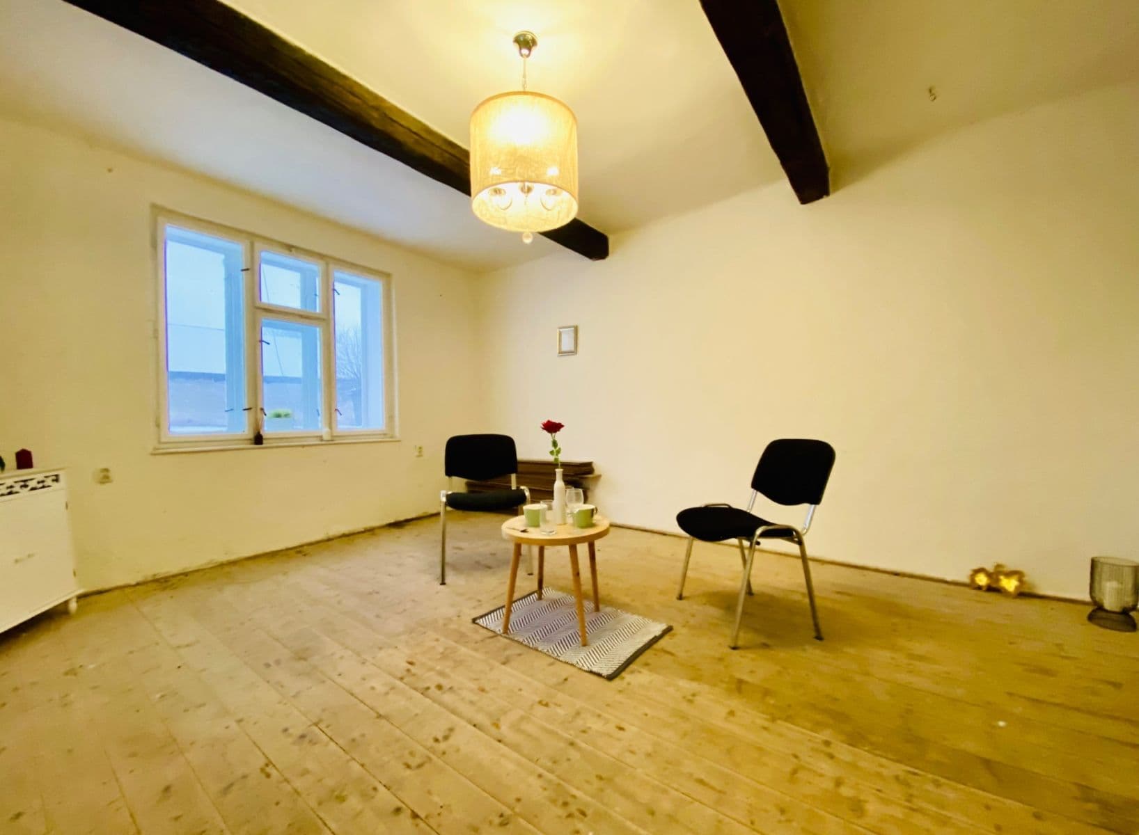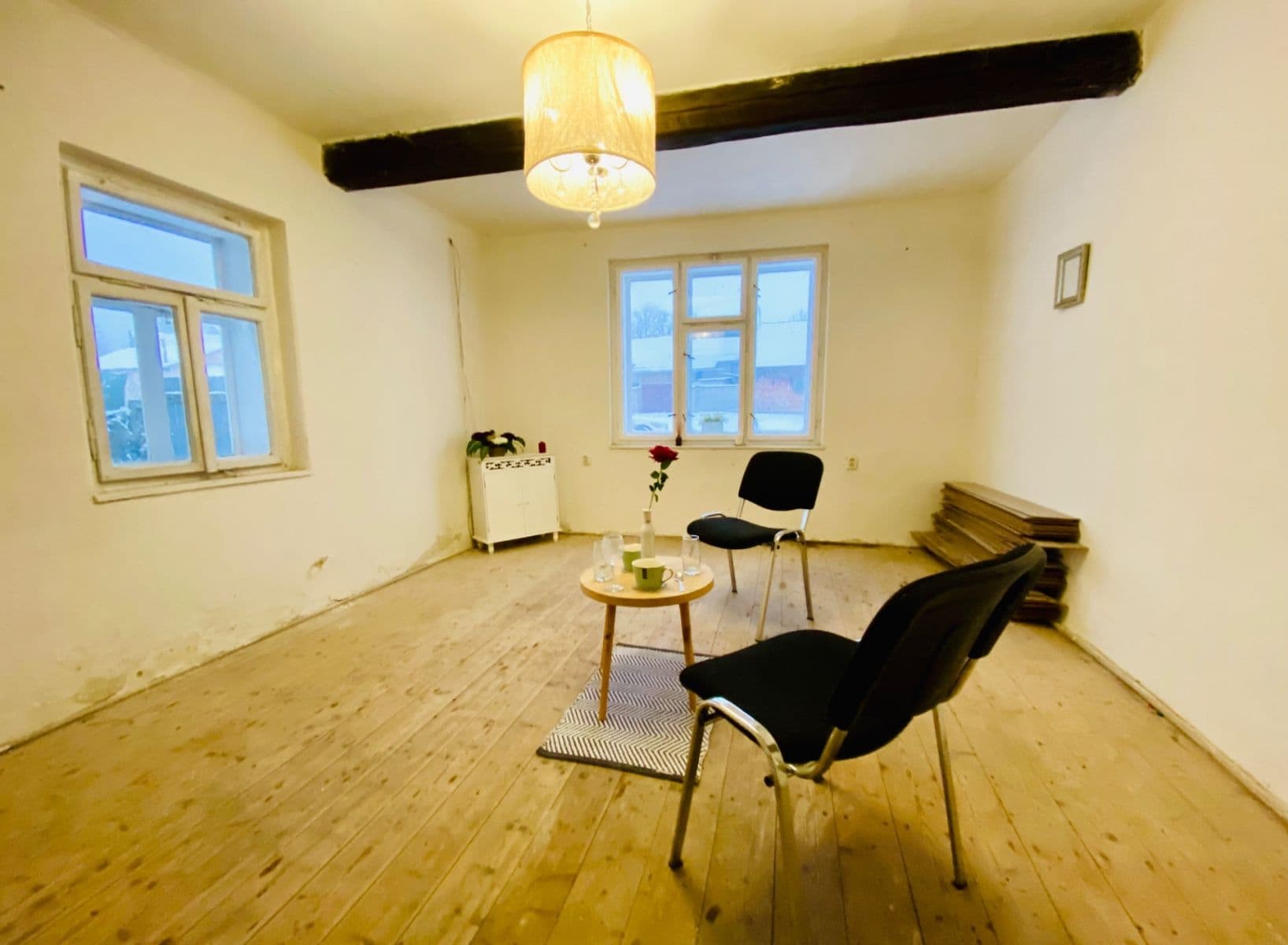 Dům se nachází v malebné obci Svídnice u Dymokur, cca půl hodiny autem od Černého mostu. Obytná plocha je 60 m2. Plocha pozemku téměř 500 m2. Vytápění na tuhá paliva (kamna). V domě je zavedena elektřina, obecní kanalizace a voda z vodovodního řádu. Přípojky dělány nově v letošním roce. Podlahu (plovoucí podlaha) je možno si znovu složit (ponechána v domě), nebo zvolit jinou krytinu. Dům netrpí na vlhkost. Půda dosud nevyužita, možnost vestavby. Veškerá občanská vybavenost se nachází ve 2 km vzdálených Dymokurech.