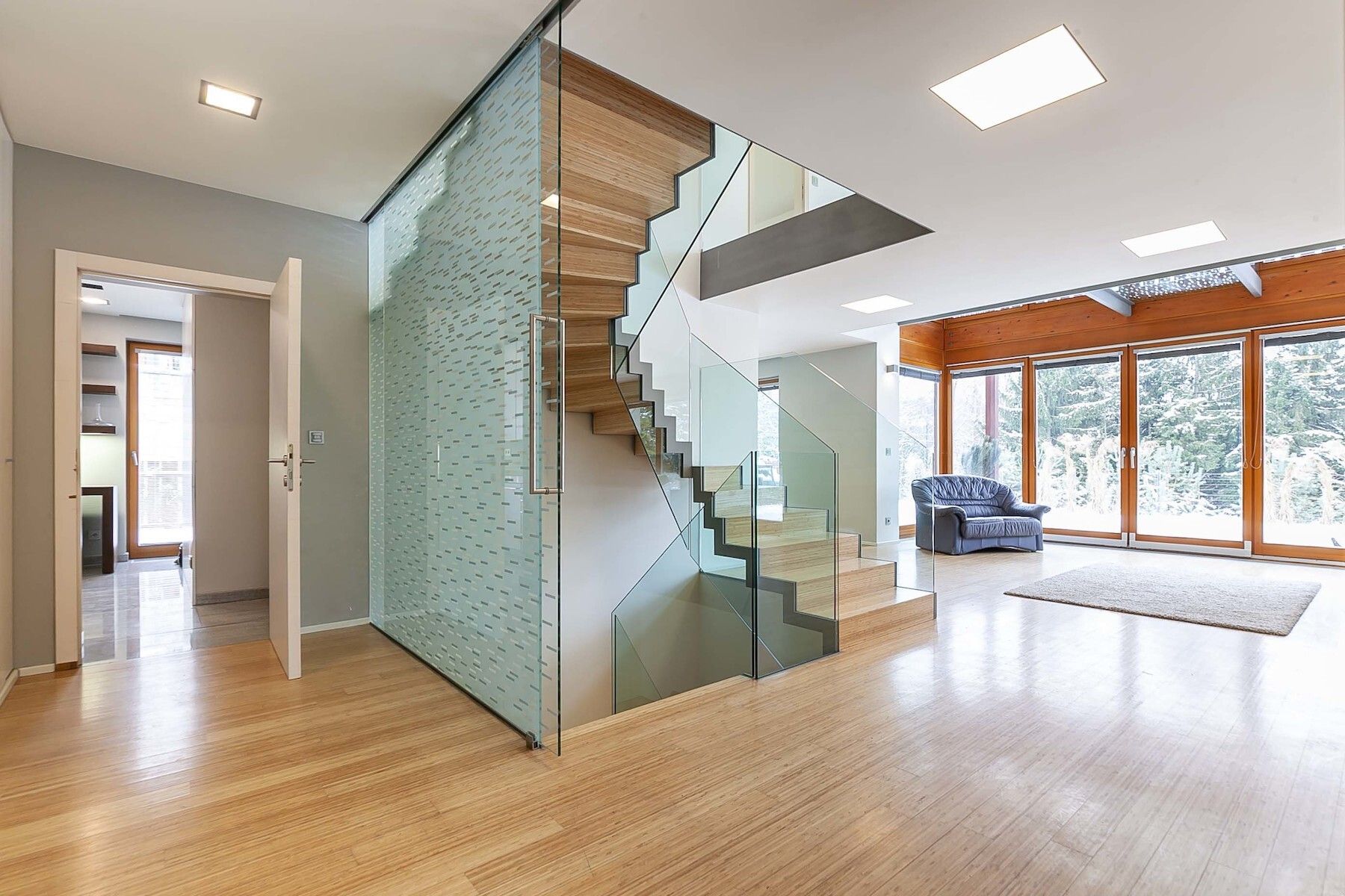 V interiéru byly použity kvalitní materiály, jako je například bambusová podlaha (jeden z nejtvrdších přírodních materiálů) nebo mramor. Nábytek na míru a velké množství úložných prostor jsou samozřejmostí. Dvě nadstandardní šatny poskytují dostatek místa pro všechny vaše věci.